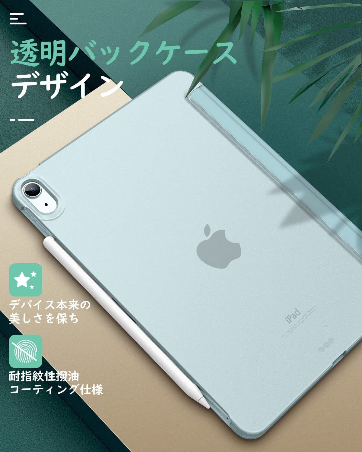 iPad Air 11インチ M3/M2 ケース 2025/2024 Dadanism iPad Air 11インチ/Air 5 Air 4 10.9インチ カバー Air 11 第7世代/第6世代 オートスリープ 三つ折り スタンドケース PU+PC 半透明 PencilPro/第2世代ワイヤレス充電 水色
