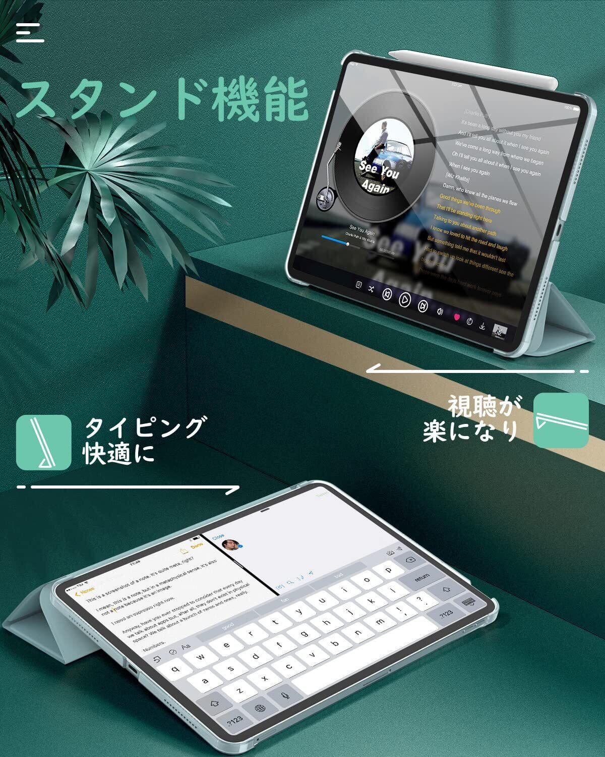 「前蓋PUレザー+背面半透明PC」 ケースの蓋は耐久性に優れた高級PUレザーで仕上げられて、インナーの素材は柔軟なマイクロファイバー製で、端末が摩擦により発生する擦り傷を和らげます。iPadをしっかりと保護できます。背面ケースは半透明PC製で薄型一体式手帳型全保護仕様となっており、優しい手触り感じがして、取付やすくなっています。