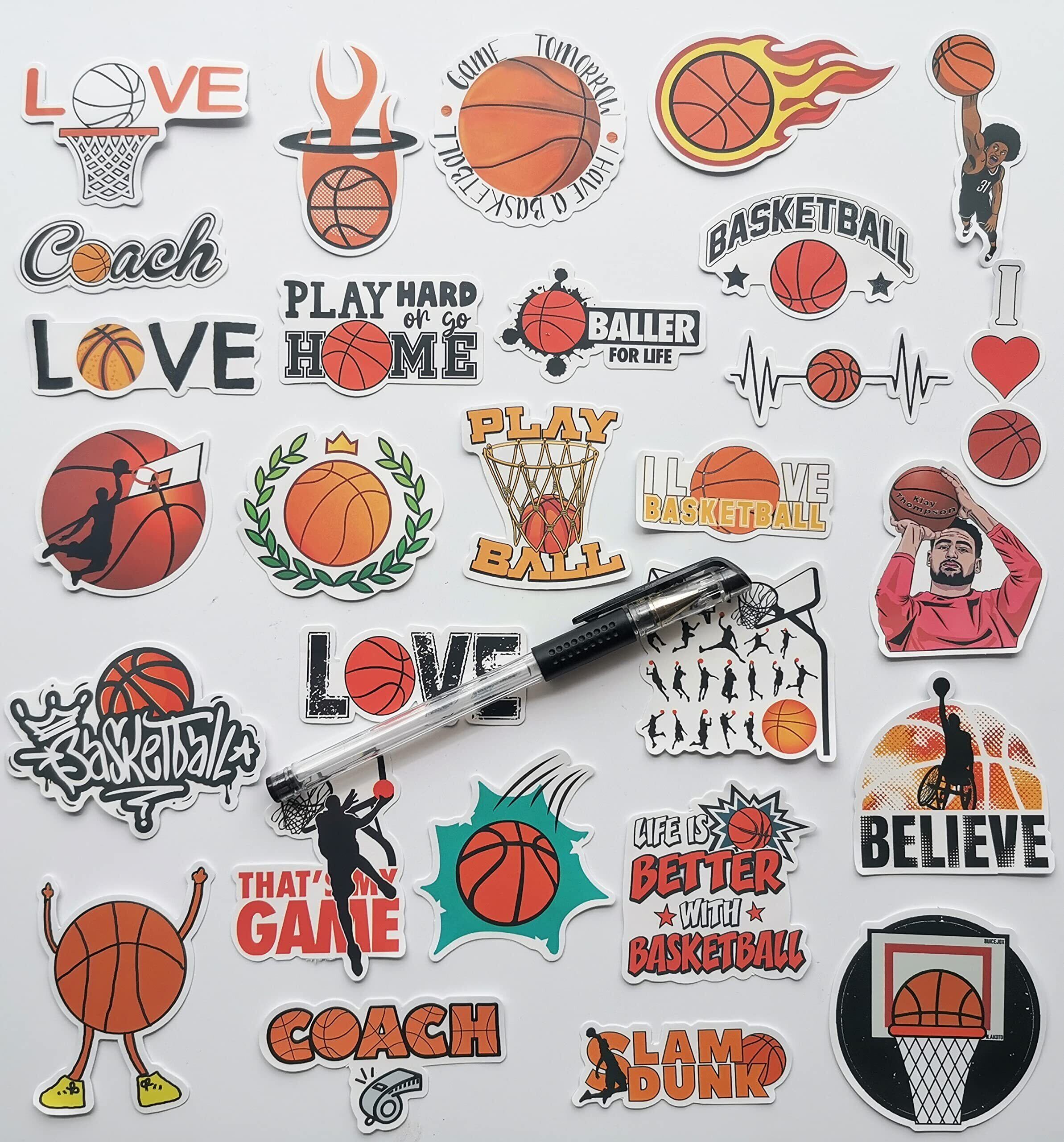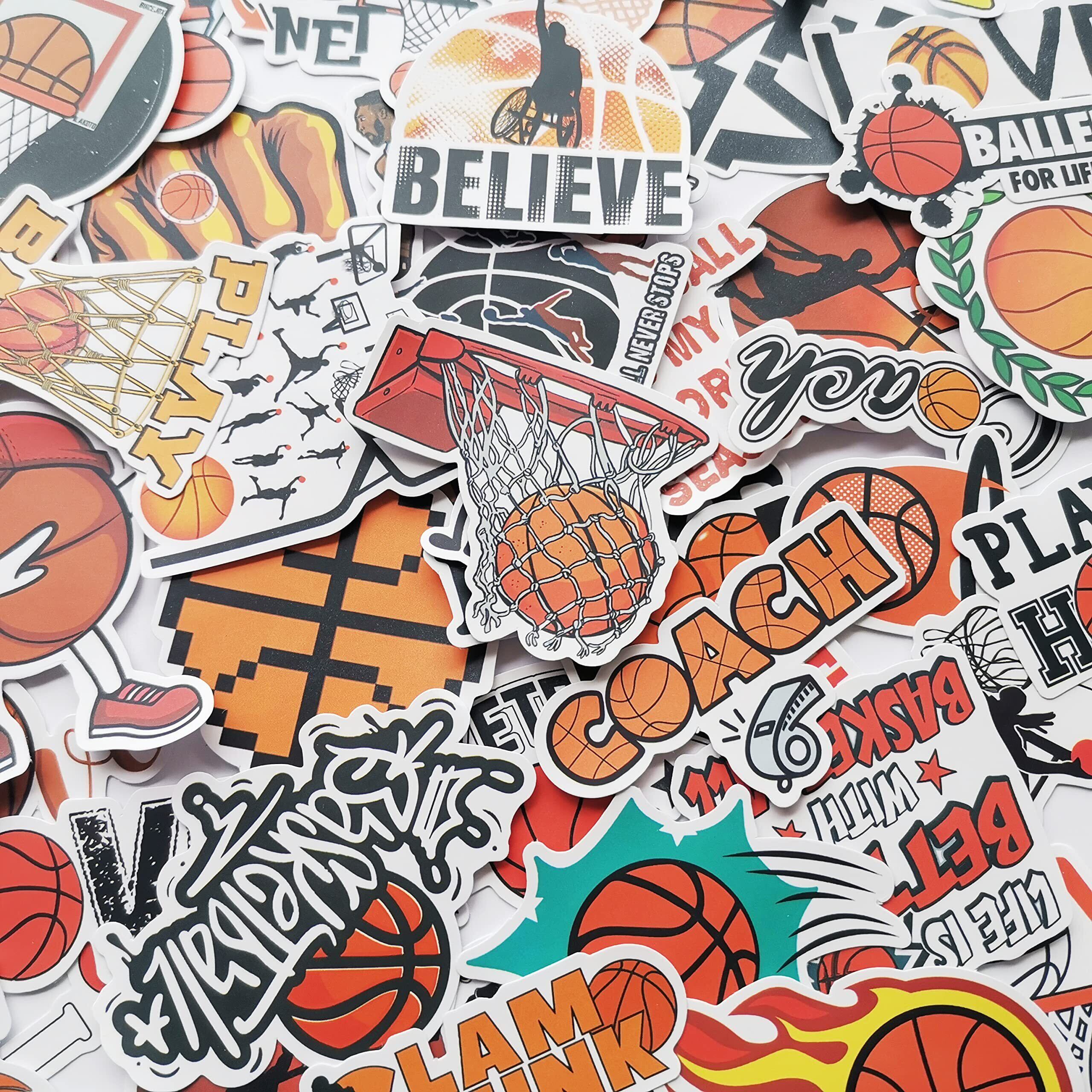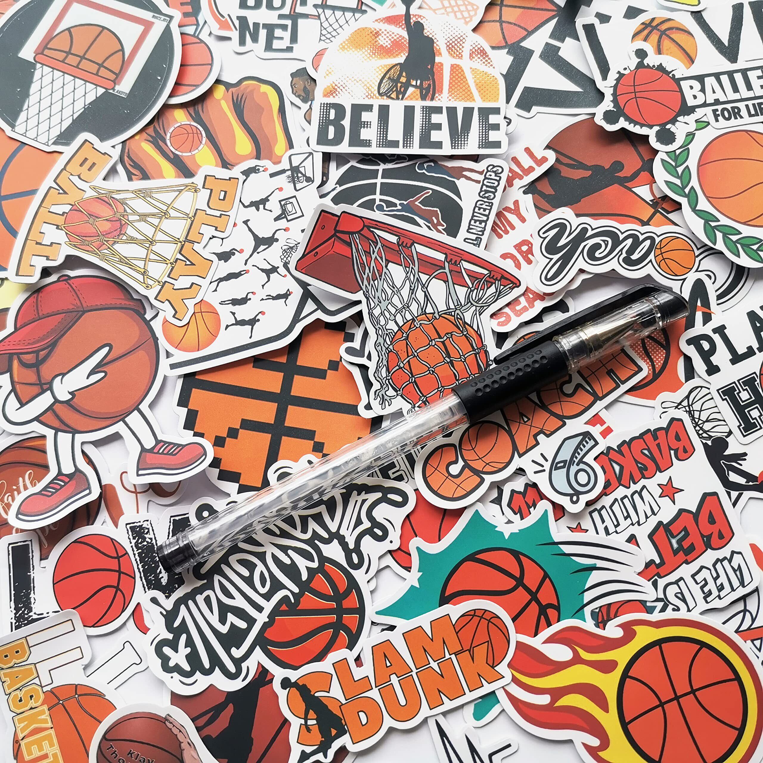 MiroSan 50枚 パロディバスケットボールステッカー 面白バスケシール ダンクシュートデカール 子供ミニバスケシール
