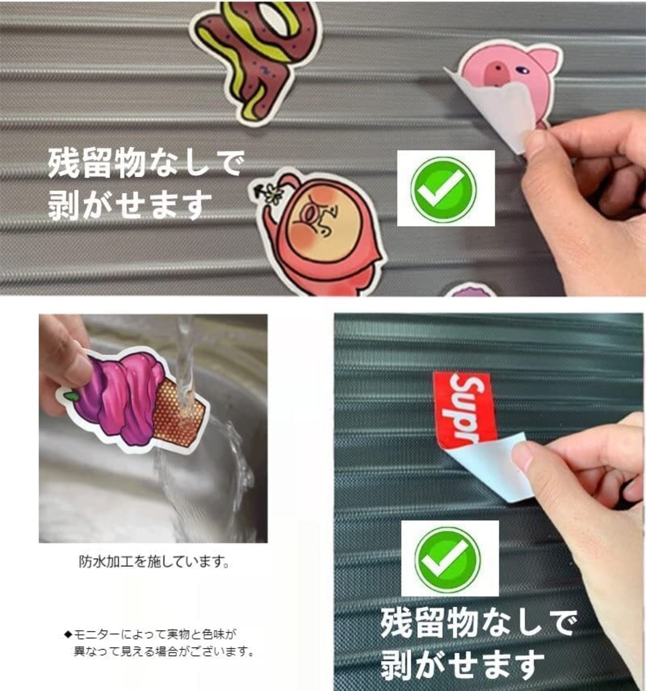 【ステッカー - 使用方法】まずは滑らかな表面をきれいにし、その後、お気に入りのステッカーを選択してその上に貼ります。ステッカー埃や水などの影響でステッカーの粘着力が弱くなる場合がございますので、使う前にちゃんと貼る表面をきれいにしてください。