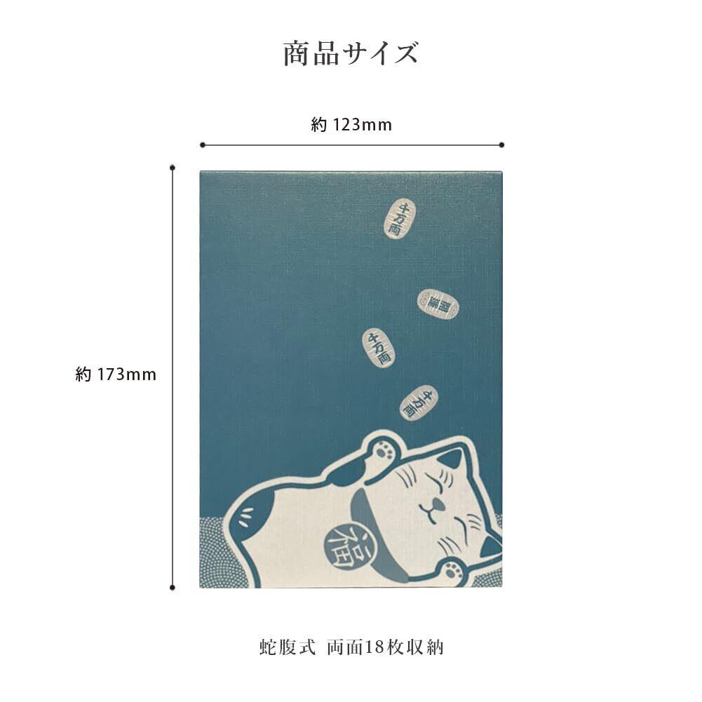 【サイズ】173×123mm 【素材】紙(表紙/中身)、ゴム、合成皮革(ゴムバンド)【重量】105g 【内容】朱印帳 1冊 ゴムバンド1個 【備考】蛇腹式 両面18枚収納