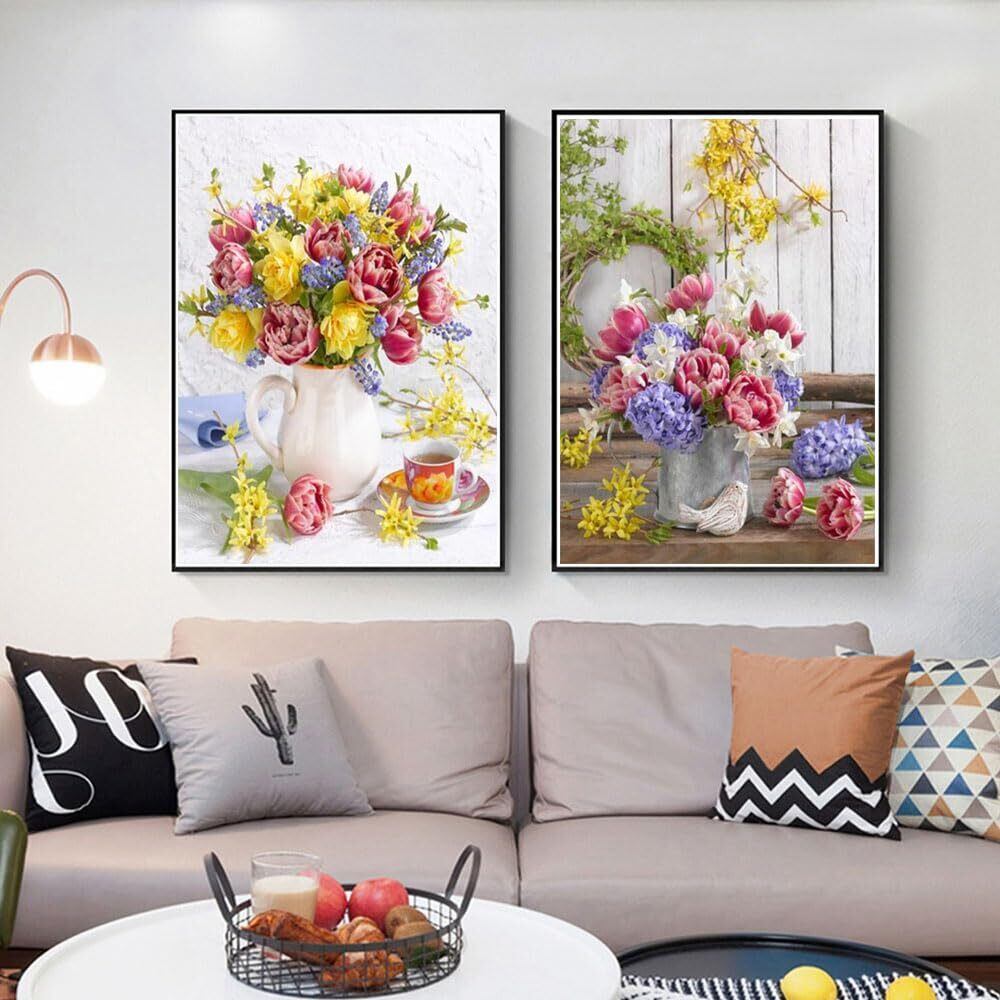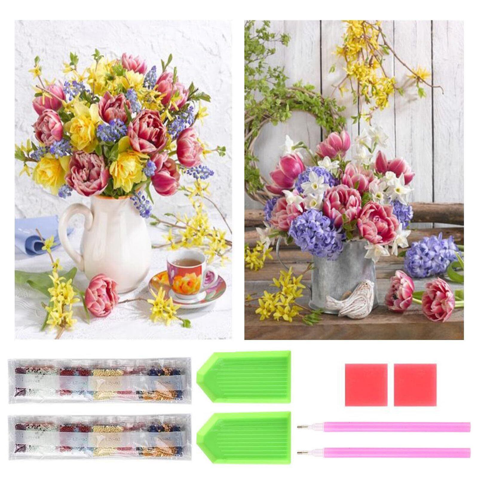サムコス ダイヤモンドの絵画 ダイヤモンドアート キット 2個セット 暇つぶし おしゃれ かっこいい 全面貼り付け ハンドメイド 初心者 DIY 花 手芸キット 家の装飾 (花9)