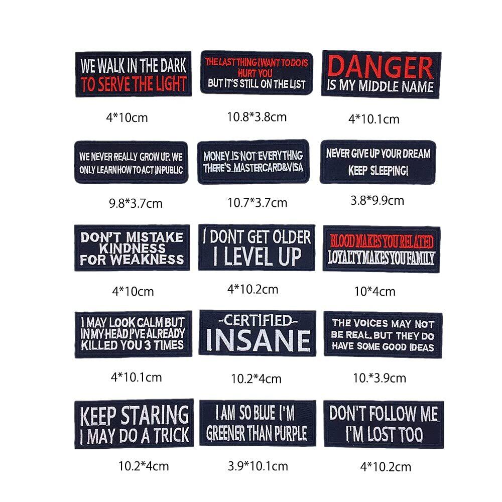 YFFSFDC 英語刺繍 ワッペン 15枚セット アイロンワッペン 刺繍 アップリケ タッグ ミリタリー 男子ジャケット 黒色 パッチ 補修