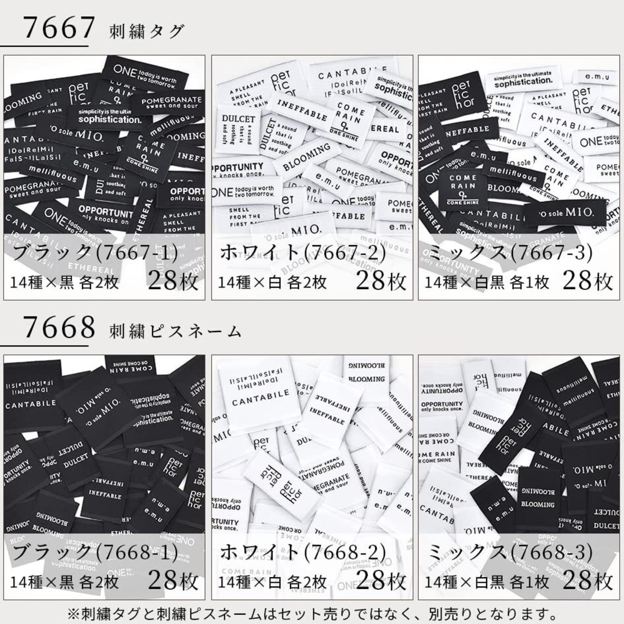 ■商品番号:刺繍タグ7667:ブラック(7667-1)、ホワイト(7667-2)、ミックス(7667-3)
