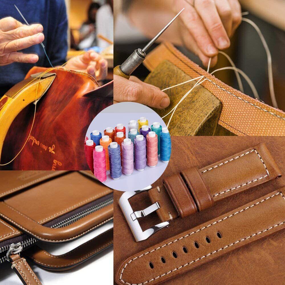 【最適太さ:0.8㎜】 ポリエステルろうびき糸、太さ0.8㎜、3㎜と5㎜菱目打ちと相性よく、通しやすく平紐タイプでステッチも綺麗に。、レザークラフト手縫いに最適。