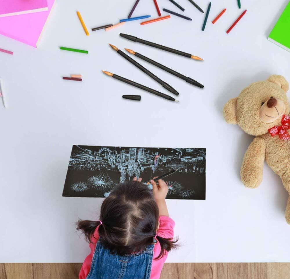 DFsucces スクラッチアート 10本セット 黒8本+白1本+刷毛 極細 ペン スクラッチペン ペーパーアートツール スクラッチアートペン 入門 初心者