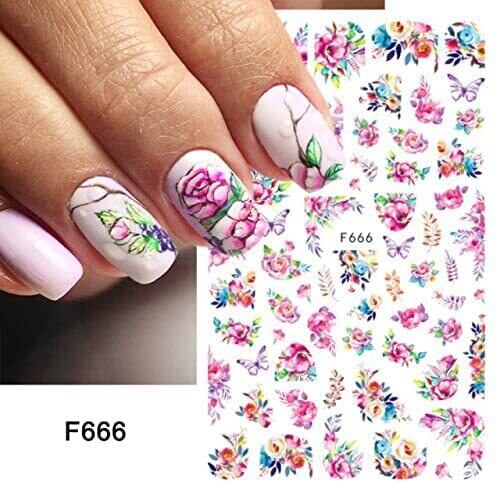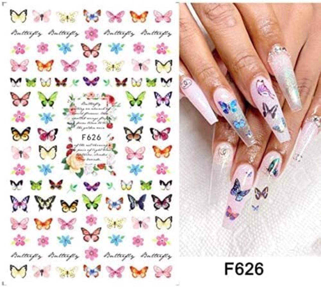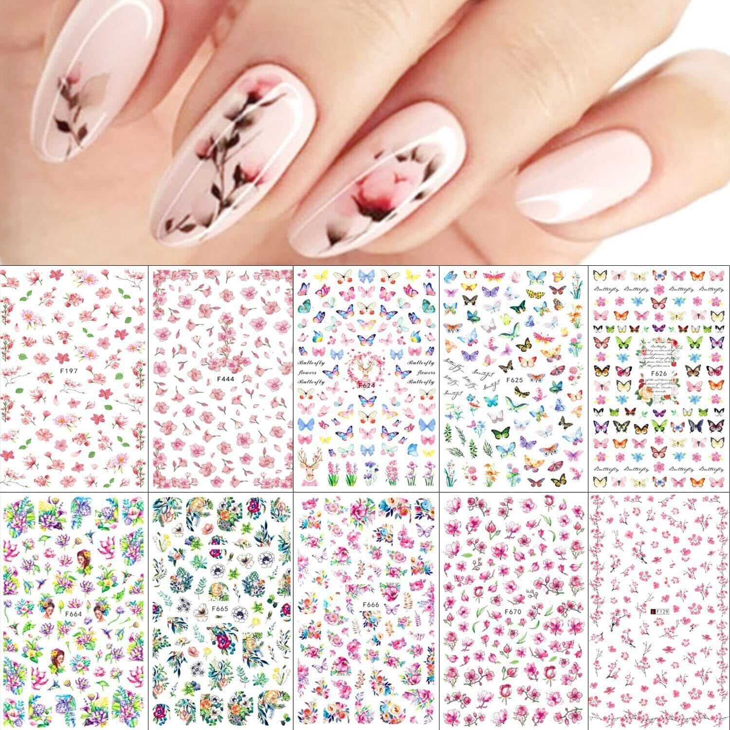 LANODO 10枚 春 花柄ネイルアートシール 3D ネイルシール 貼り紙 綺麗 蝶々