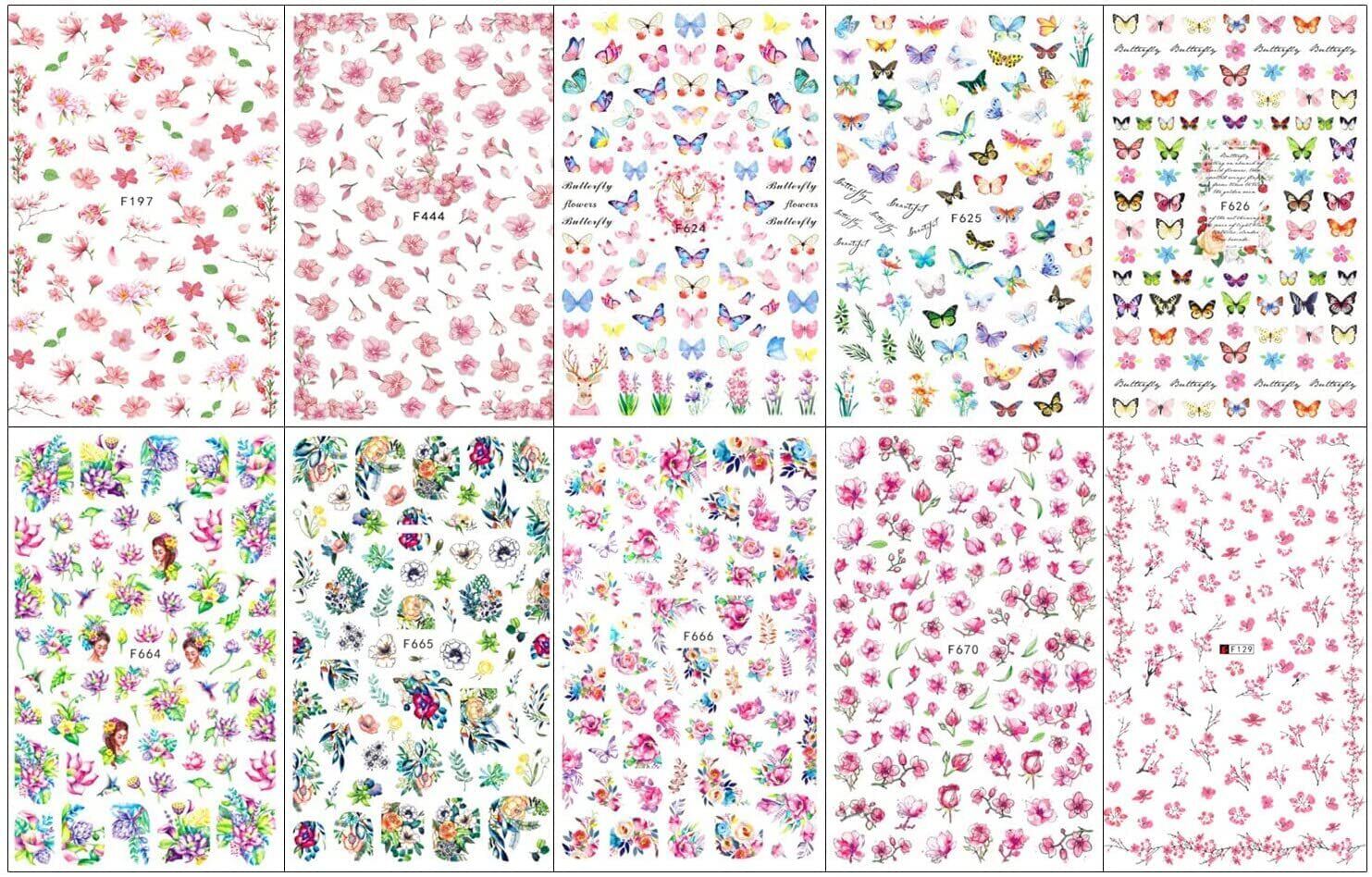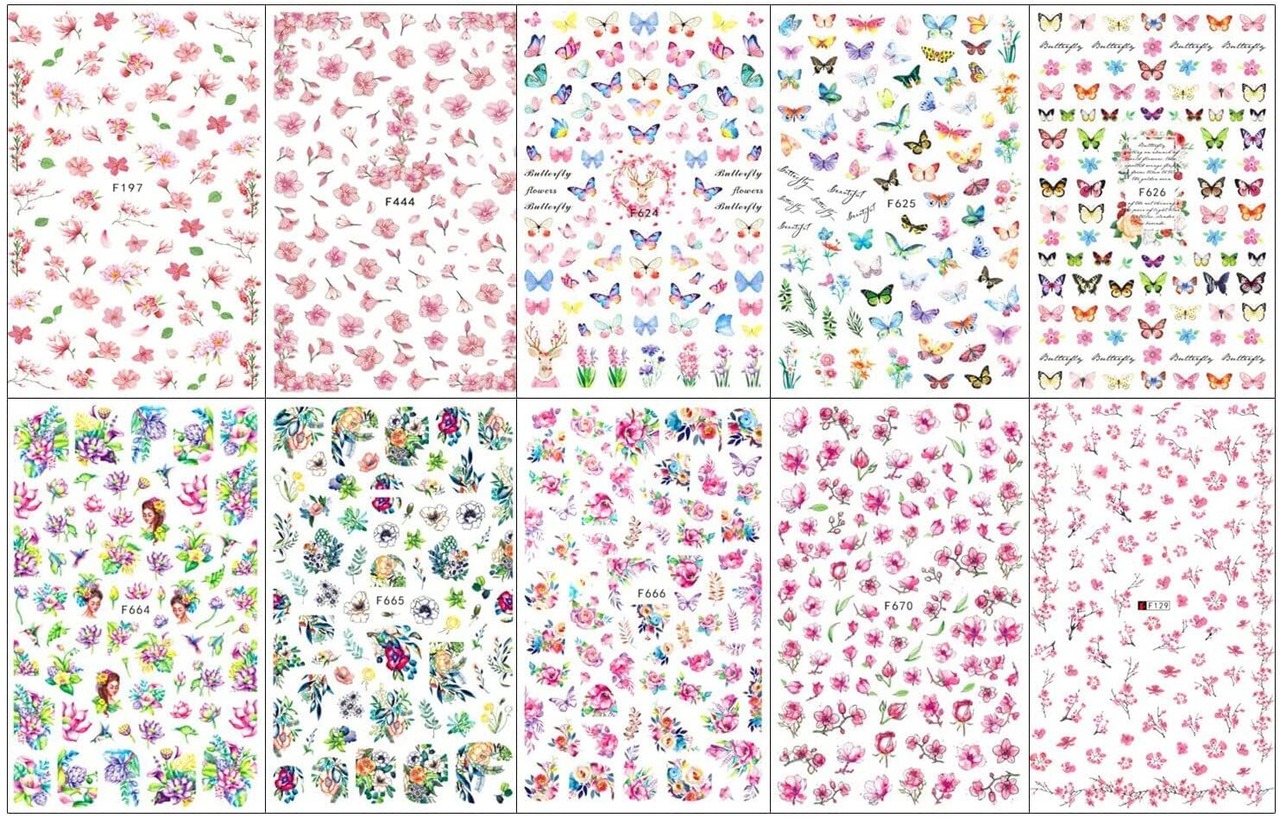 セットに含まれるもの:10枚 春 花柄ネイルアートシール 3D ネイルシール 貼り紙 綺麗 蝶々