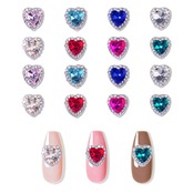 【ハートのネイルストーン】ネイルのワンポイントにぴったりのキラキラしているハート型のネイルストーンです。明るいストーンとクリスタルをはめ込んでいるネイルパーツはとても綺麗です。