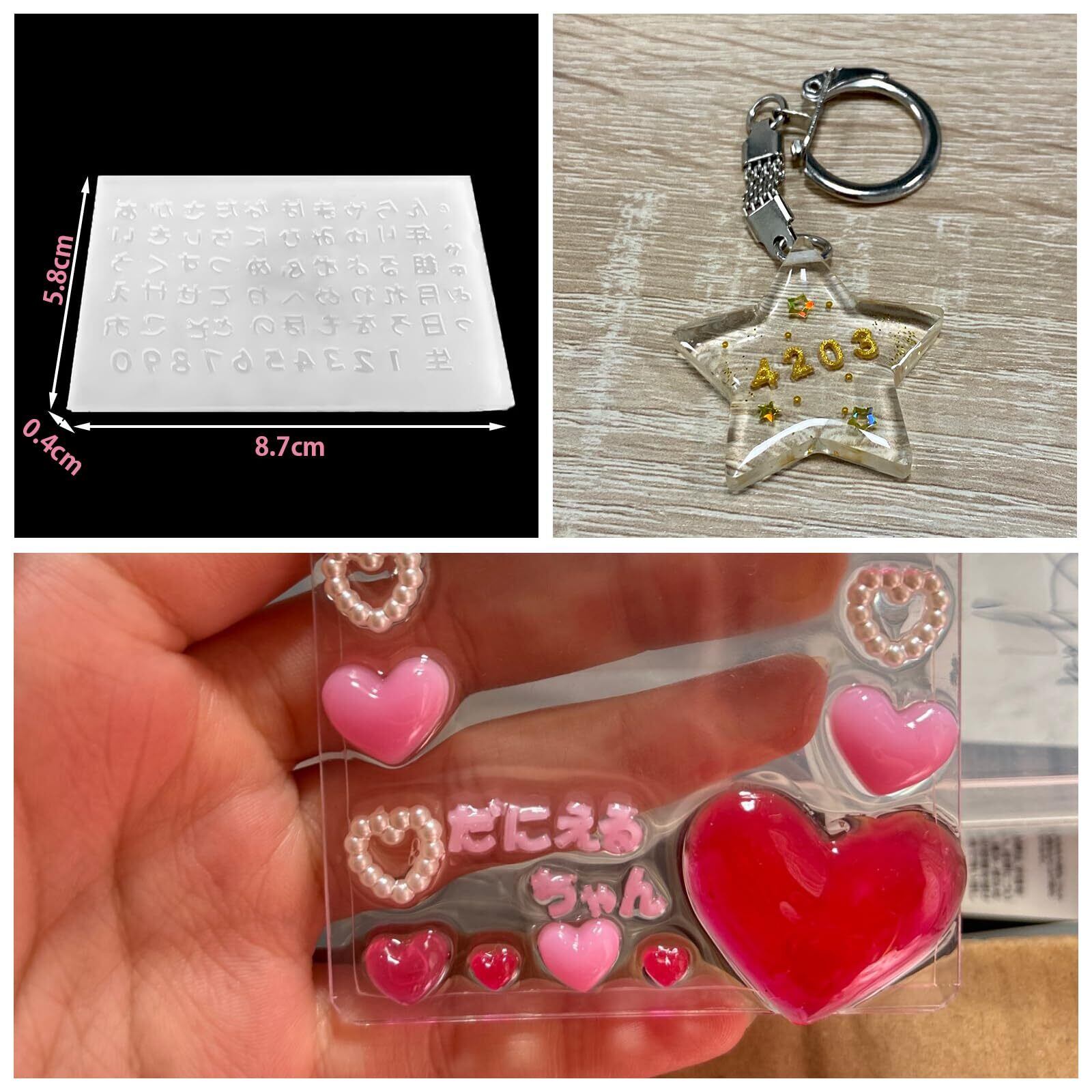 【レジンのトレカデコやネイルチップに!!】ってもかわいいひらがな文字、数字、アルファベットのミニサイズ。少量のレジン液で作れちゃう。お名前ストラップやキーホルダー作りに欠かせないアイテムです。 【柔らかい素材】モールドは柔らかくて、初心者でも安心、簡単に作り出します。モールドはシリコン素材で作らた、柔軟性が高く、耐久性もあります。複数回使用も可能です。 【DIY】さまざまなDIYプロジェクトに適しています。UVレジン、樹脂粘土、エポキシ樹脂に使用可能です。 【最高の贈り物】ストラップやキーホルダー、ネイルチップ、キーチェーン、バッグチャーム、ペンダントなどを作るのにぴったりです。作ったシャカシャカチャームは友達のプレゼントとしても最適!子供一緒に作っても楽しい! 【に注意】シリコンモールドは消耗品で、複数回使用すると破損する場合があります。使用後にキレイにして、日光や埃から離して保管してください。もし何か問題がございましたら、お気楽にご連絡ください。完成品は付属しておりません。シリコンモールドの型4点のみとなります。