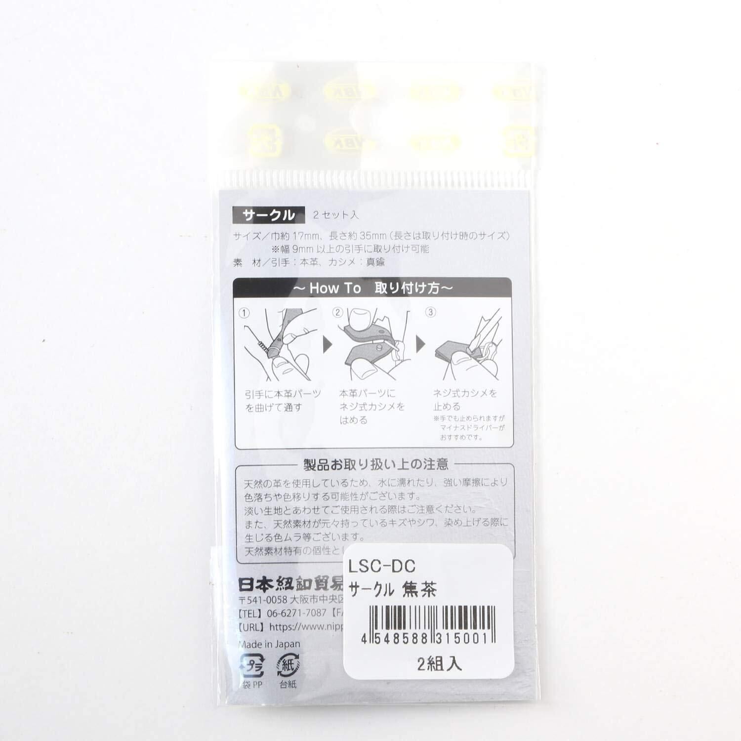 【在庫処分】日本紐釦貿易(Nippon Chuko)NBK 本革 ファスナー引き手パーツ サークル型 ネジ式カシメ付き 約17mm×35mm 焦げ茶 ダークブラウン LSC-DC | ニコニコSHOP