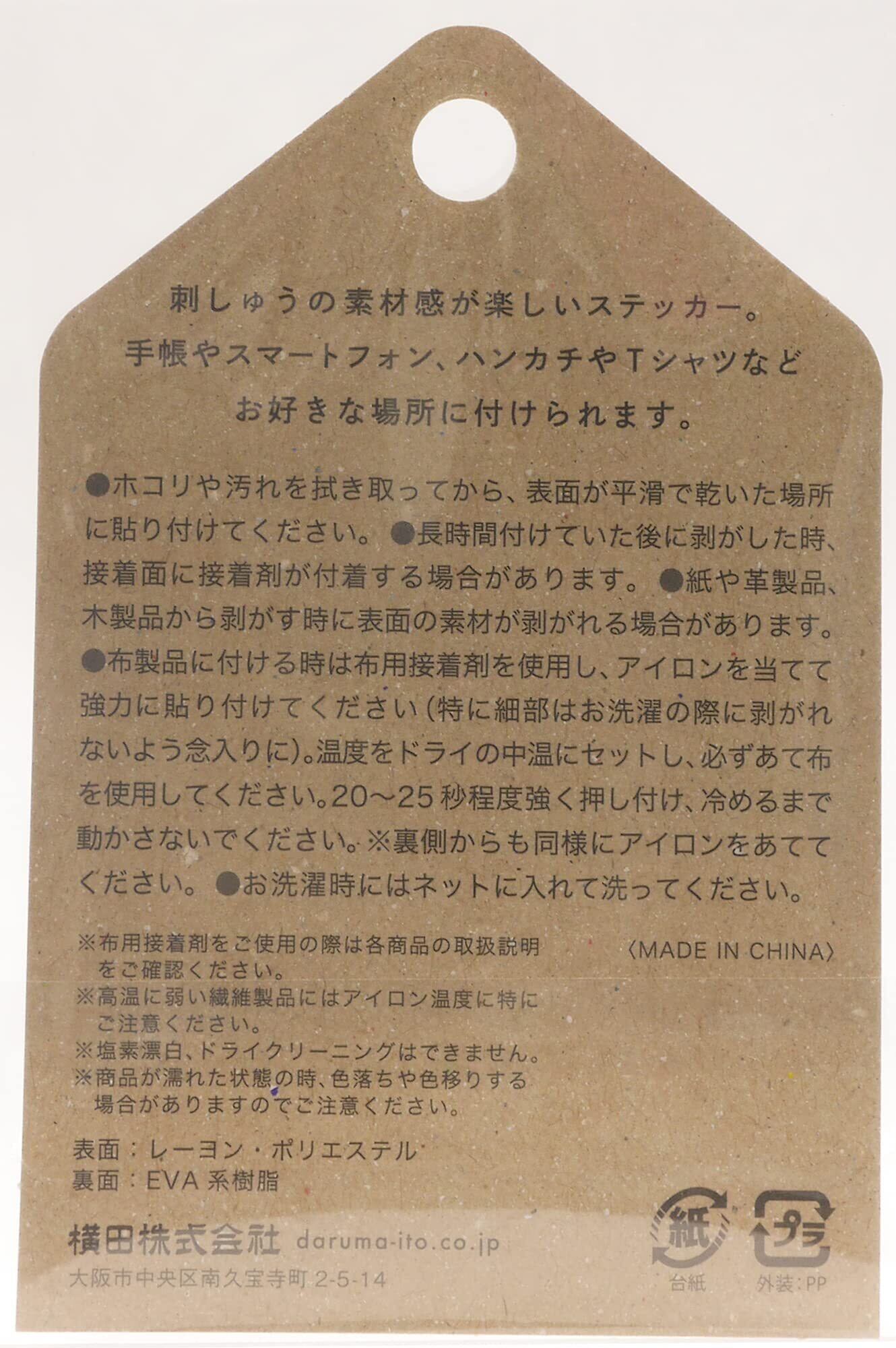 貼り付けタイプ※布に付ける場合は布用接着剤を使用してください。