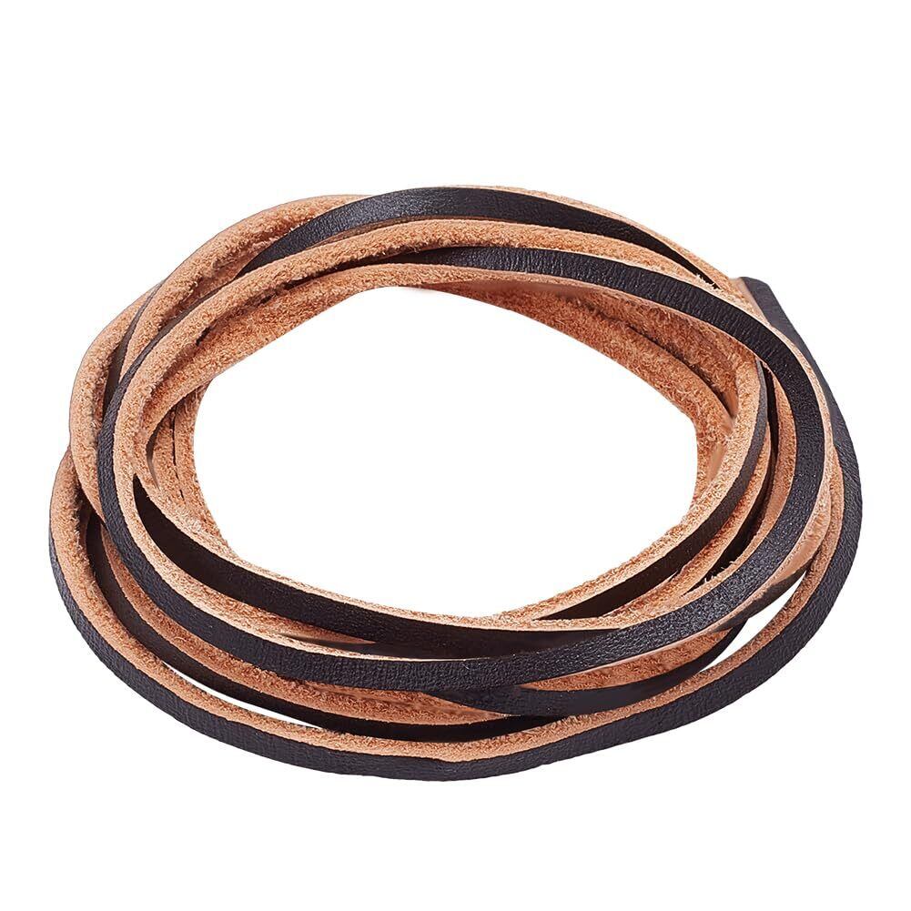 PH PandaHall 1巻き 約2m/巻き 紐 レザーコード 幅3mm ひも 平コード レザー ストラップ 素材 皮ひも 革ロープ ベルト・バッグ・ネックレッス・ブレスレット・スマホなど アクセサリー用紐 サドルブラウン