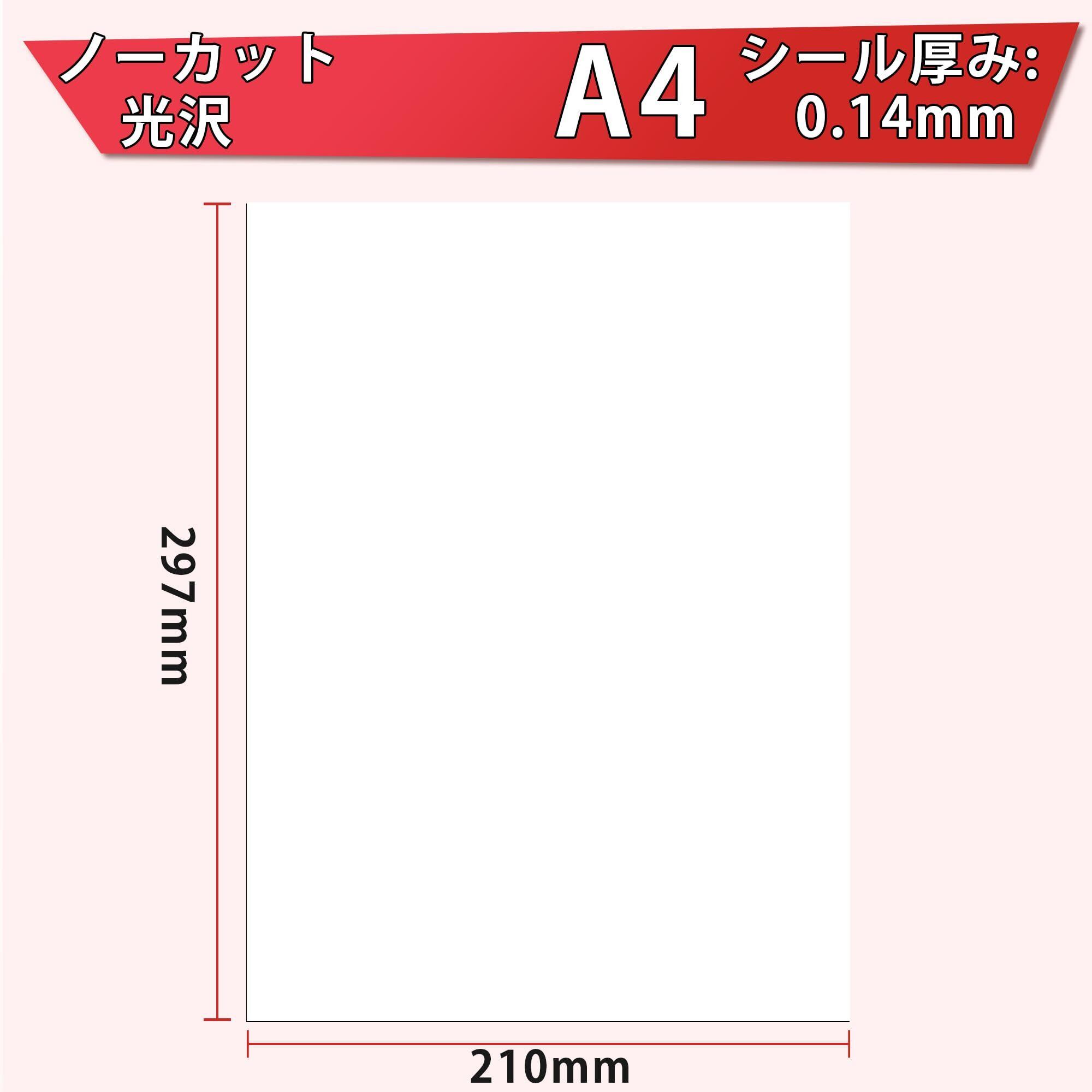 サイズ:A4(210mm×297mm)100枚入り ノーカットステッカー光沢シール用紙