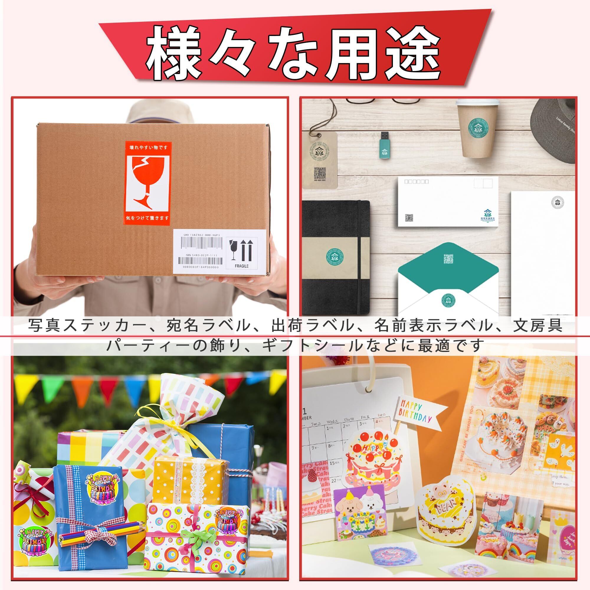 適用シーン:家庭、学校、オフィス、工作室など、さまざまな場所で幅広く使用できます。写真シール、手帳シール、宛名ラベル、出荷ラベル、および食品、文房具、飾りステッカー、DIYギフトなどに最適です。一年間保証