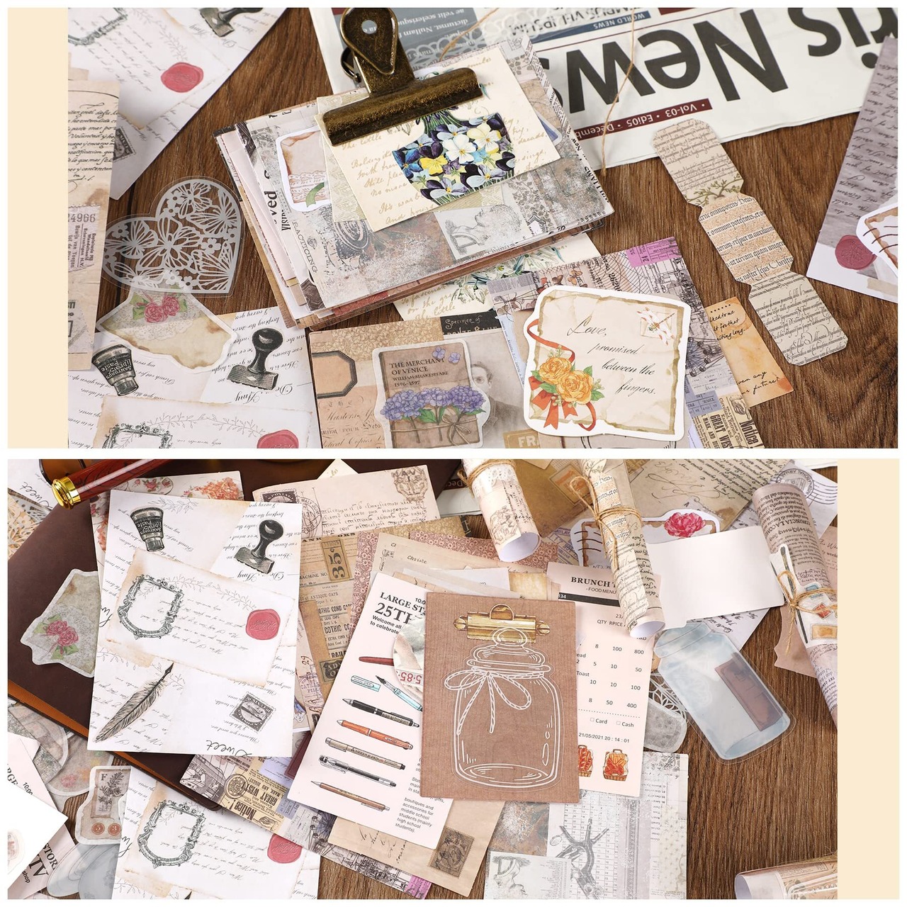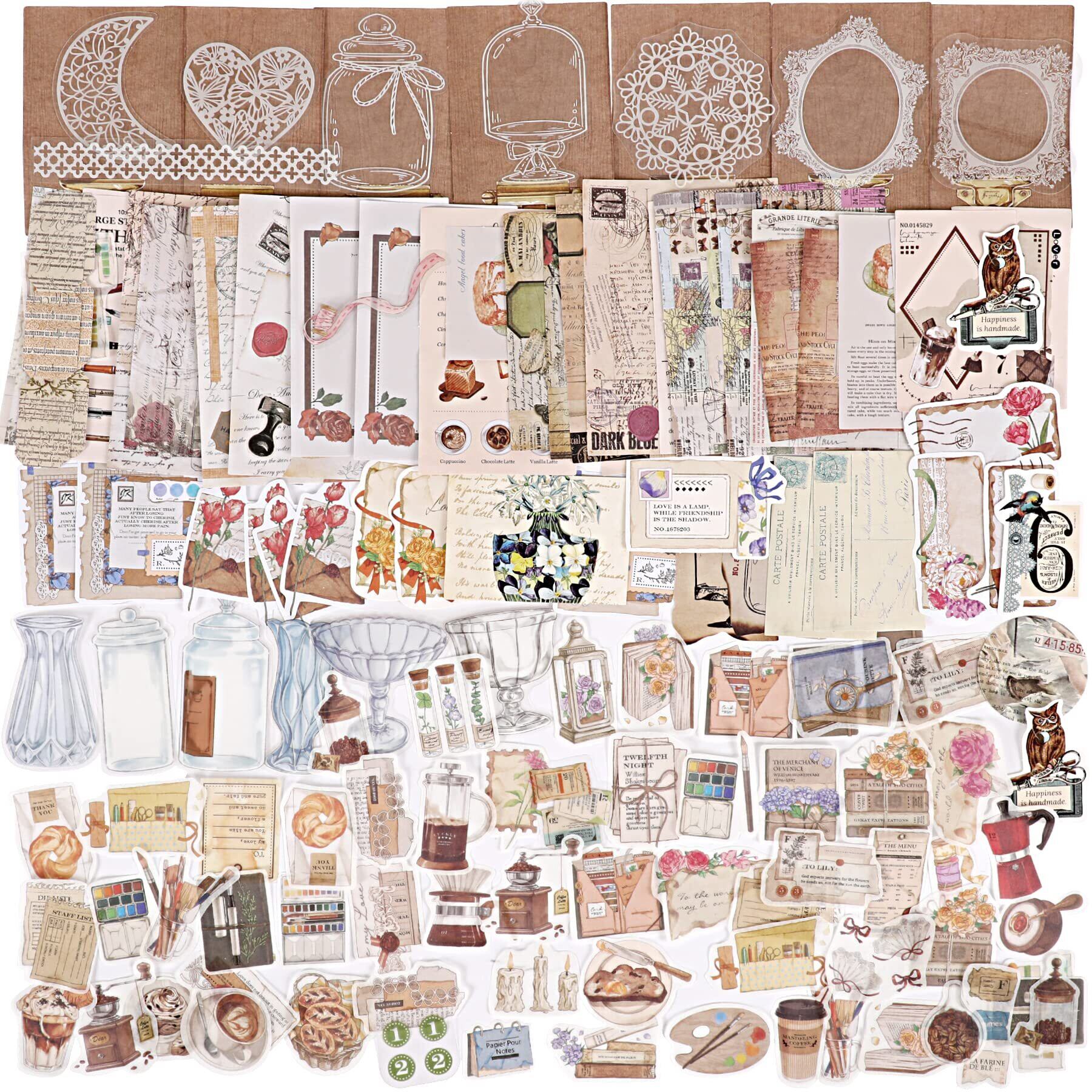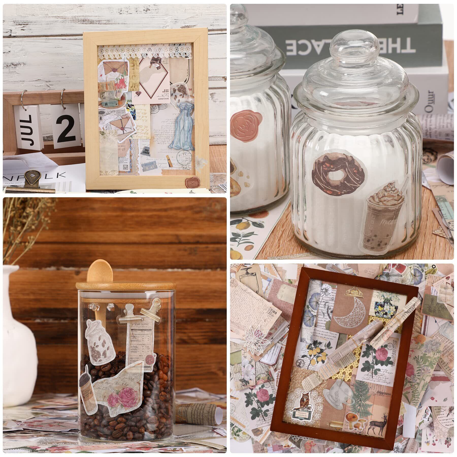 【豊富な内容】コラージュシール、デザインペーパー、クラフトタグ、フレームなど、セットには様々なコラージュ 素材がありるので、自分の好みやニーズに合わせてDIYを十分に楽しむことができます。