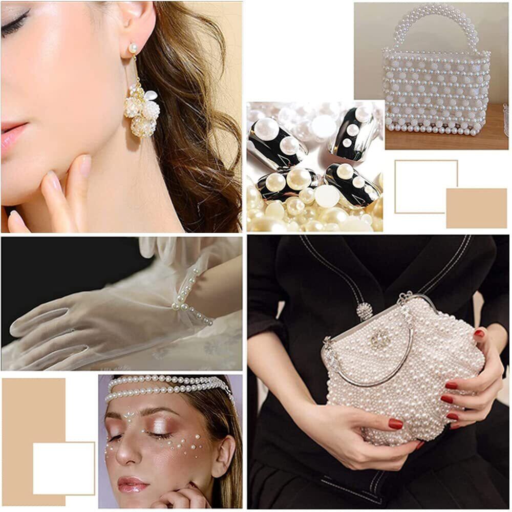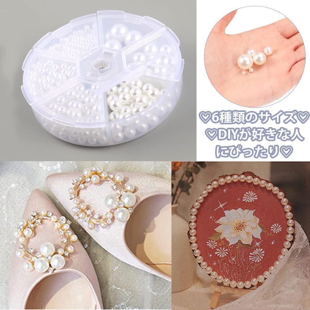 サムコス 樹脂パール パールビーズ 約700粒セット ラウンド 丸玉 穴なし 小さな 手芸用品 DIY 材料 縫製用 手作り 工芸品の装飾 ジュエリー用 ハンドメード ネックレス イヤリング ビーズセット 6サイズ (こめしろい)