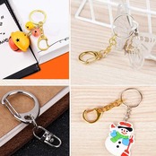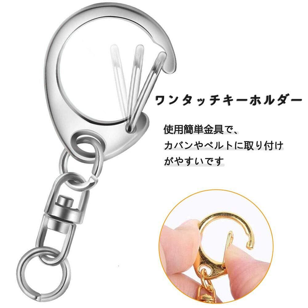 4.ワンタッチキーホルダー、簡単に取りつけ、ハンドメイドキーホルダーに欠かせない金具です。プラ板、レジン、プラバン、ハメパチ、革小物、フェルトなどオリジナルなパーツを下の丸カンに付ければ、おしゃれな、独特なキーホルダーが出来上がり。
