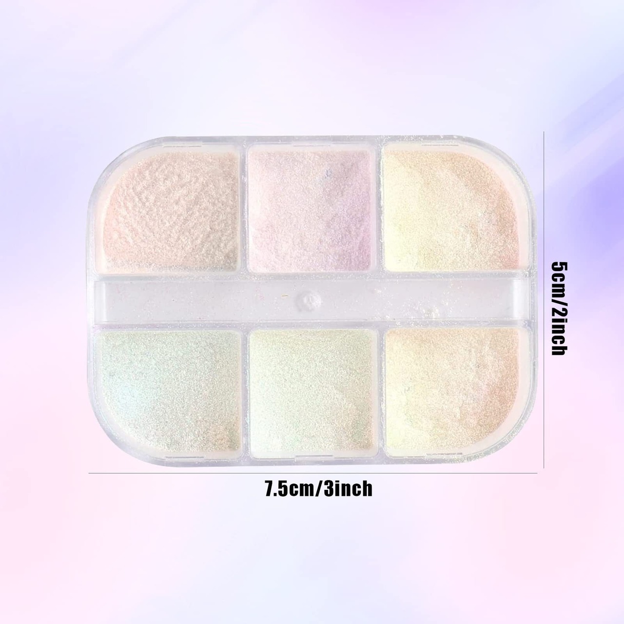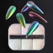 【パッケージ】6色のオーロラパウダーが一つのケースに入っています。細かいパウダーなので、開封時にご注意ください。