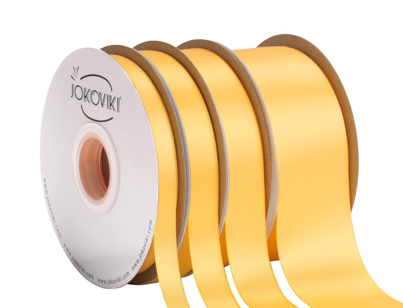 【在庫処分】【JOKOVIKI】イエローゴールドサテンリボン 3mm幅 ダブルフェイス クオリティサテン - ギフトラッピング、ウェディング、招待状、クラフト、アパレル、ヘッドバンド用 - 91メートル/巻き | ニコニコSHOP