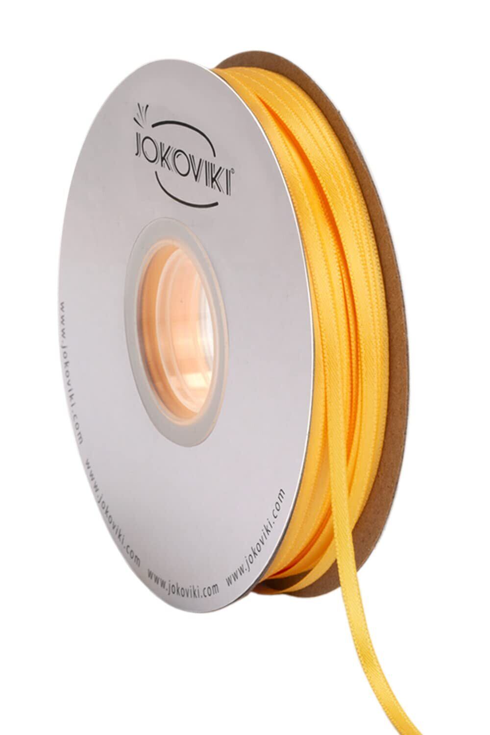 【JOKOVIKI】イエローゴールドサテンリボン 3mm幅 ダブルフェイス クオリティサテン - ギフトラッピング、ウェディング、招待状、クラフト、アパレル、ヘッドバンド用 - 91メートル/巻き