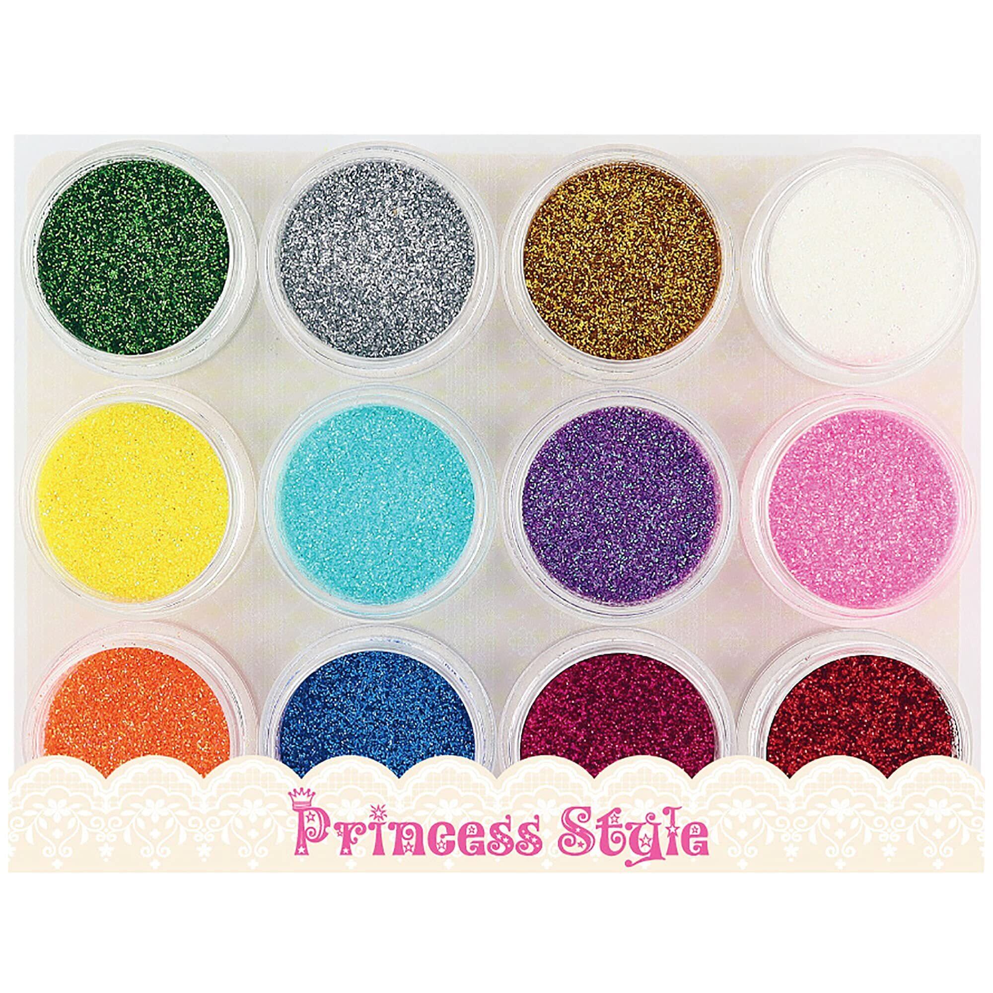 Princess-style グリッター(ラメパウダー) ネイル&レジン用 新仕様(こぼれ出し防止) 12個/セット