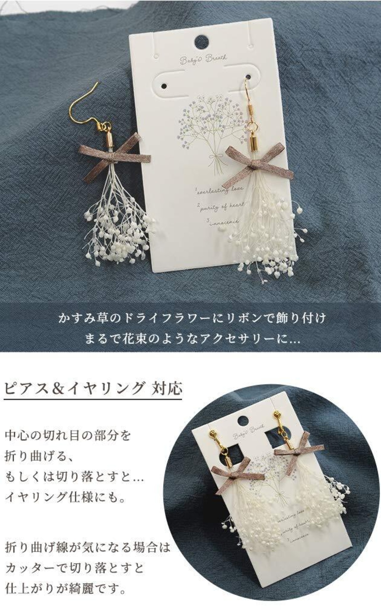 0179ピアス(イヤリング)と0180のネックレス&ピアス(イヤリング)の台紙に付きまして、ピアス(またはネックレス)の穴が空いているものになります。 これは仕様になります。 お届け時に抜けきらずに台紙にくっついている場合がありますが、先の細い針などで突きますと簡単に取れます。 また、袋から出したり触ったりするだけで穴が落ちます。 お届け時、穴が既に空いた状態であっても、抜けきらずに塞がった状態でも不良品ではございません。 ・イヤリング用のU字の切り込みに関して、若干隙間が見えるものがある場合がございます。 これは生産工程上、起こる現象になります。完全に避けることは難しいものになります。 予めご理解の上お買い求めいただきますようお願い致します。