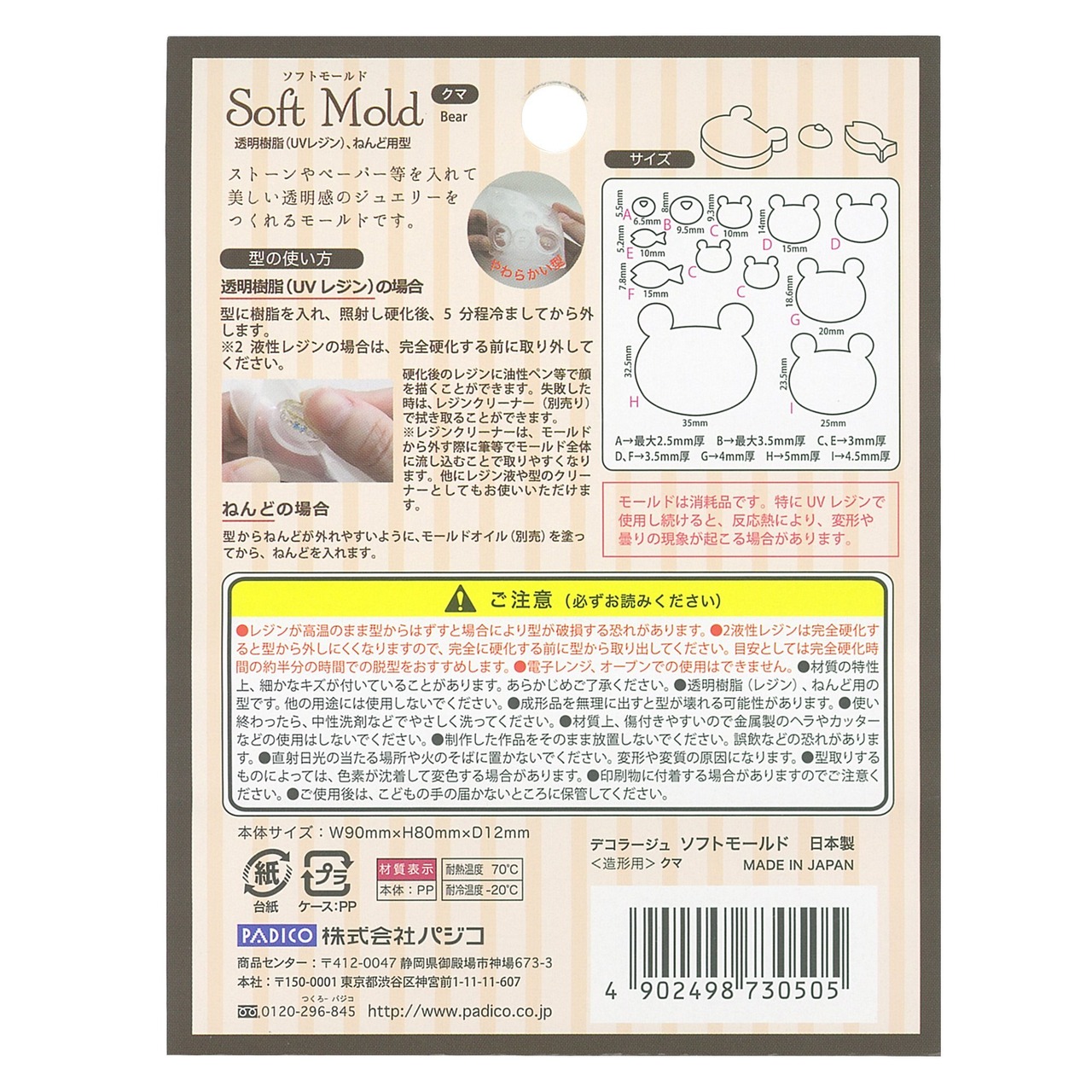 ソフトなモールドなのでレジンなどの素材で型抜きしても抜きやすく、透明なので何処まで液を注いだかもわかりやすいです。