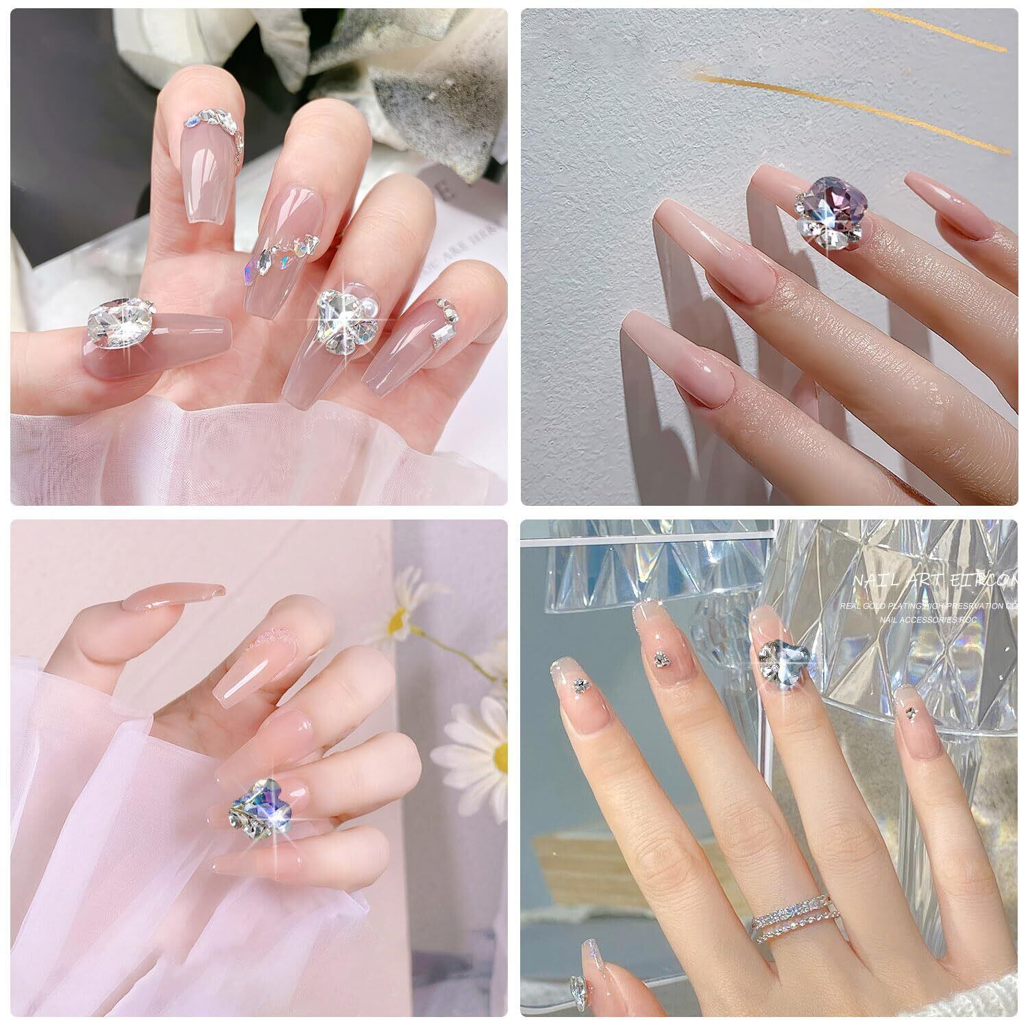 Chisafly ネイルストーン 大粒 ネイルパーツ ストーン クリスタル 宝石 キラキラ 立体 ハート スクエア 四角 レクタングル 6点セット (ホワイト)