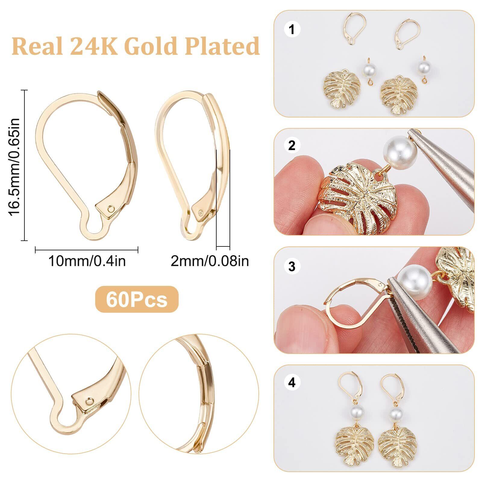 SUNNYCLUE 1箱60個 24K鍍金 レバーバック ピアス パーツ フープピアス パーツ フレンチ イヤリング フック パーツ フレンチフック フープ ピアス パーツ イヤーワイヤー レバーバック イヤーワイヤー フランス式 イヤクリップ ピアス パーツ フック ゴールデン K24 めっき 金具 スタッドピアス ステンレス 耳飾り イヤリング メンズレディ ジュエリー イヤリング作り アクセサリーパーツ クラフト用品 手作り素材 DIY材料 基礎パーツ 飾り物 レディース デコキット クラフト手芸 手作りキット 金具セット