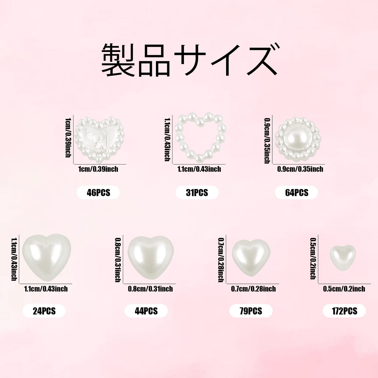 ネイルパーツ ハート 約460個 3D 立体 ぷっくり ハート型 ネイルパール 白 大きめ ネイルアート デコパーツ ジュエリーパーツ (ホワイト)