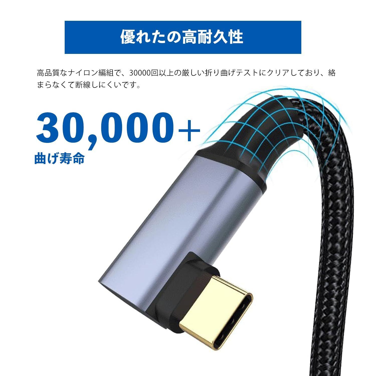 USB type C ケーブル L字 1M タイプc 充電 USB3.1 Gen2(10Gbps) 100W PD急速充電 4K / 60Hz映像出力 ナイロン編みMacBook、Pad、Surface、Switch、Xperia、Galaxy、Pixel等Type C機種対応