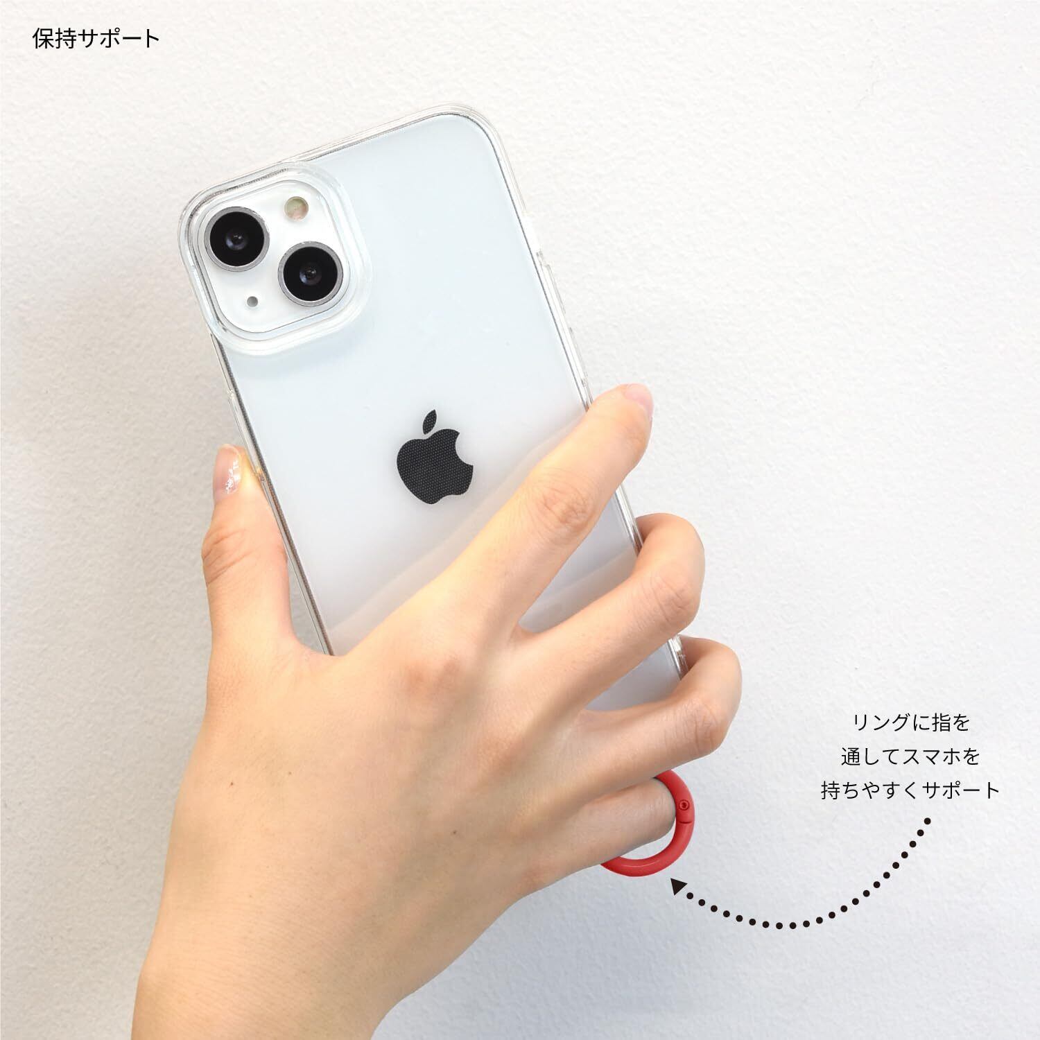 リングに指を通すことでスマートフォンの持ちやすさを向上し、落下を防止します。