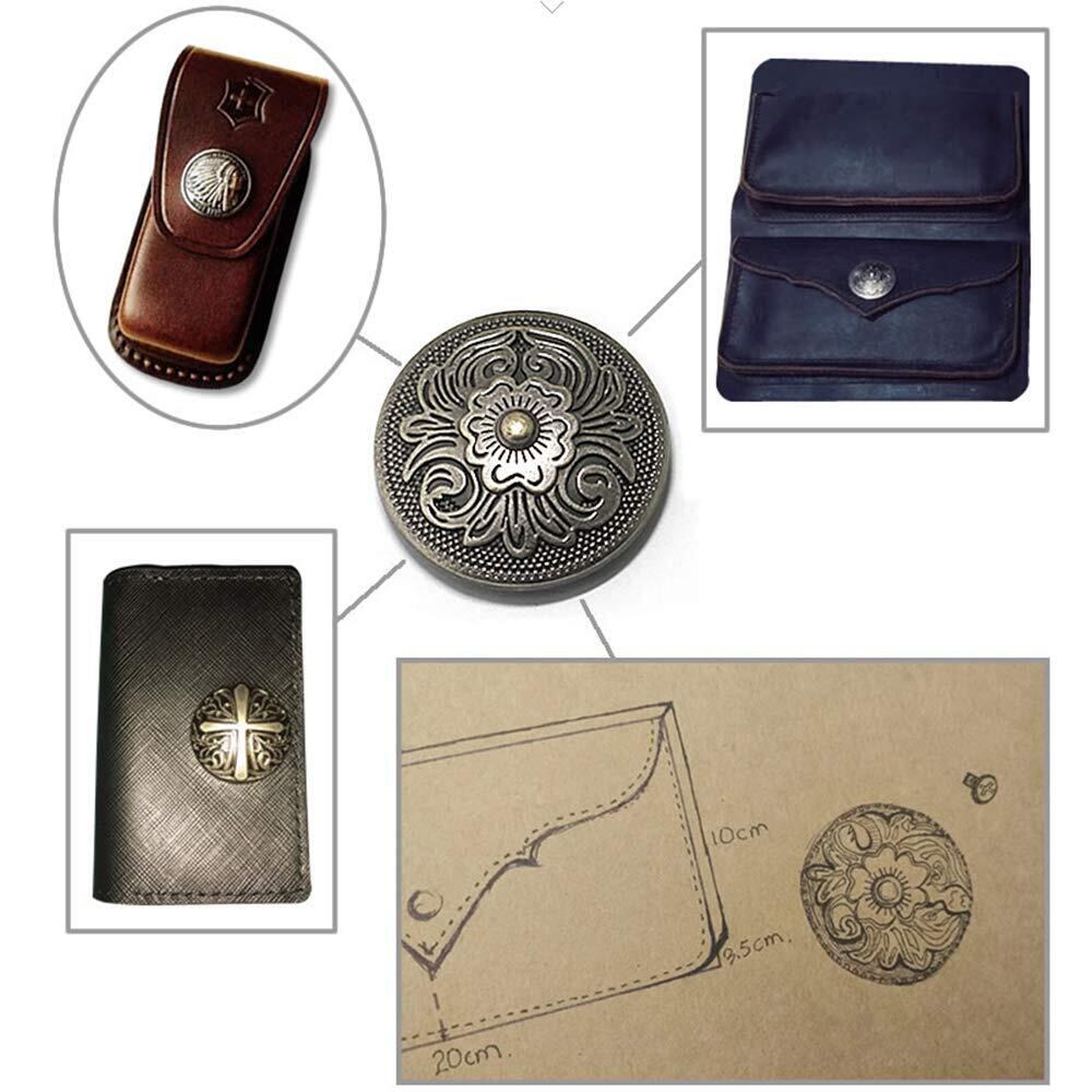 材質:合金 コンチョのサイズ:直径約20mm~33mm カラー:銀古美(ターコイズブルー) ネジのサイズ:画像にご参考ください