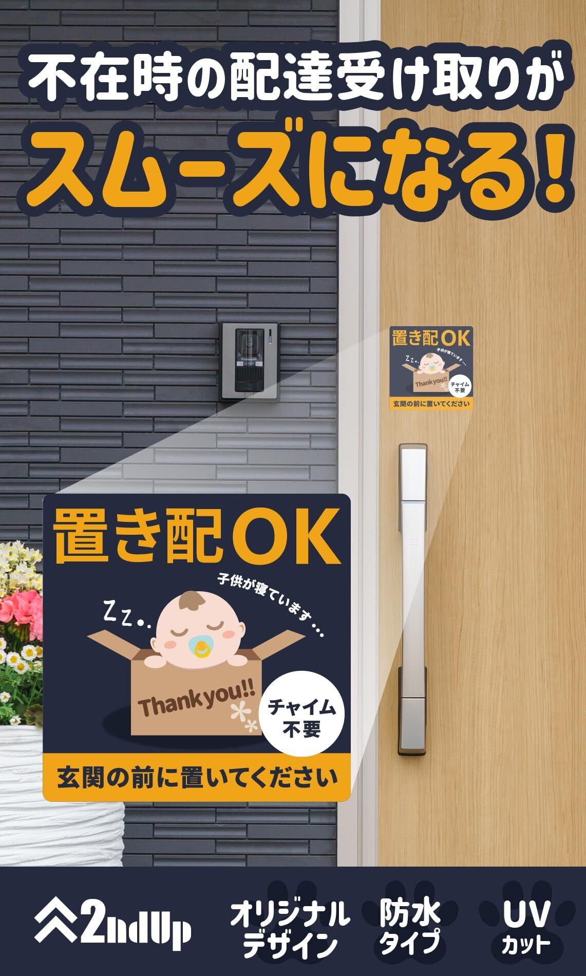 【数量限定】2ndUp 置き配 ステッカー 置き配ok 宅配ボックス ステッカー ベビー 赤ちゃん 子供が寝ています ベビーインカ― 置き配ボックス 不在時 玄関 荷物置き 置き配設定 ステッカーを設定します (置き配ステッカー/赤ちゃん) | ニコニコSHOP