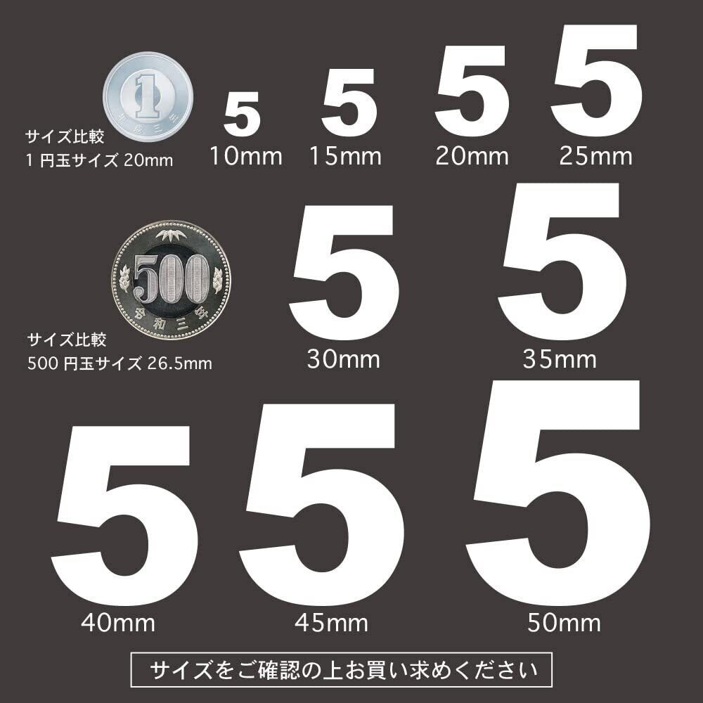 サイズが豊富。数字の防水カッティングシール。数字に切り抜かれているので並べて貼るだけで簡単にオリジナルステッカーに。防水なので、ポストやドアや 自転車、スーツケースや持ち物のデコレーションや お店のディスプレイにも。アイデア次第でいろいろ使えます。※デカールではありません。素材は厚みのあるシールです。サイズを確認の上お買い求めください <内容> ※文字サイズ 10mm 15mm 20mm 25mm 30mm (同じものが2枚入り)