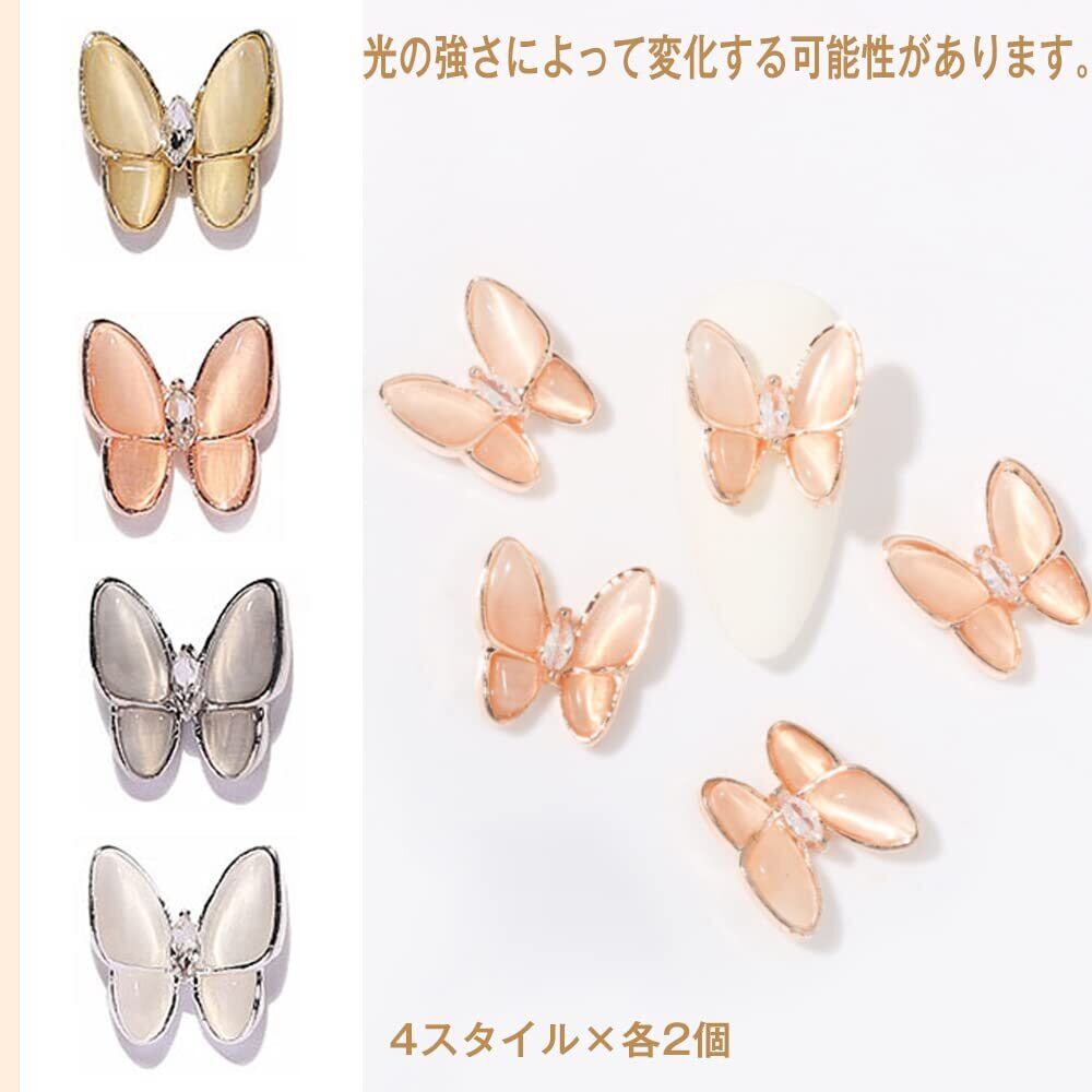 8個セット 3D 蝶型 ネイルラインストーン、4色各2個。サイズは13*13 mmで。