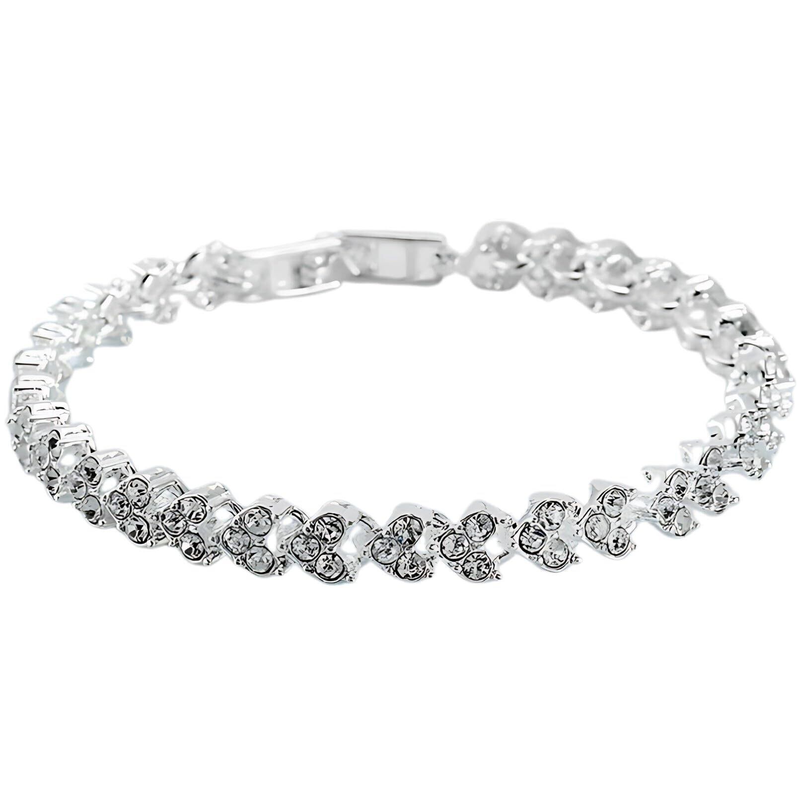 [ミャオミャオ] Miaomyao キュービックジルコニア シルバー エレガント ハート テニス ブレスレット アクセサリー レディース プレゼント ポーチ セット