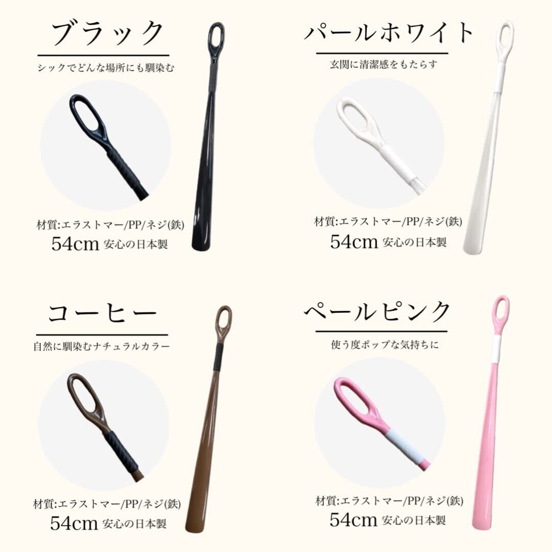 アクティカブランドの靴べらです。 全長サイズが54cm、持ち手にグリップをつけており 使いやすい仕様になっております。 色:全3色 ブラックパール、マーブル、ベッコウ 品質表示:エラストマー 鉄・PP 全長約54cm グリップ部分約6cm 穴部分約5cm 日本製