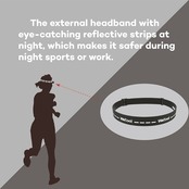 安全:夜間のスポーツや仕事中に安全に使用できるように、夜間に目を引く反射ストリップを備えた外部ヘッドバンド。