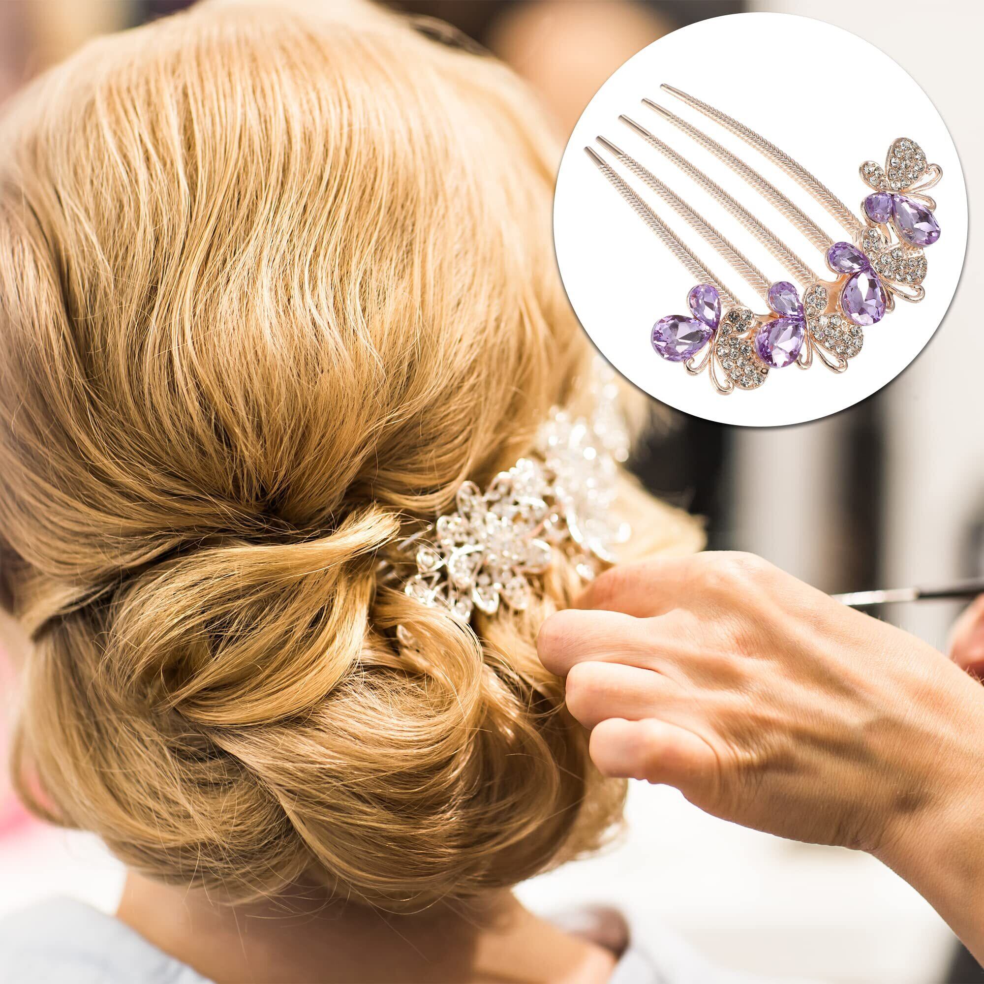 VOCOSTE 夜会巻きコーム 髪飾り 髪留め ヘアコーム ヘアサイドコーム クリップ ヘアアクセサリー 浴衣 着物 1個 ダークバイオレット