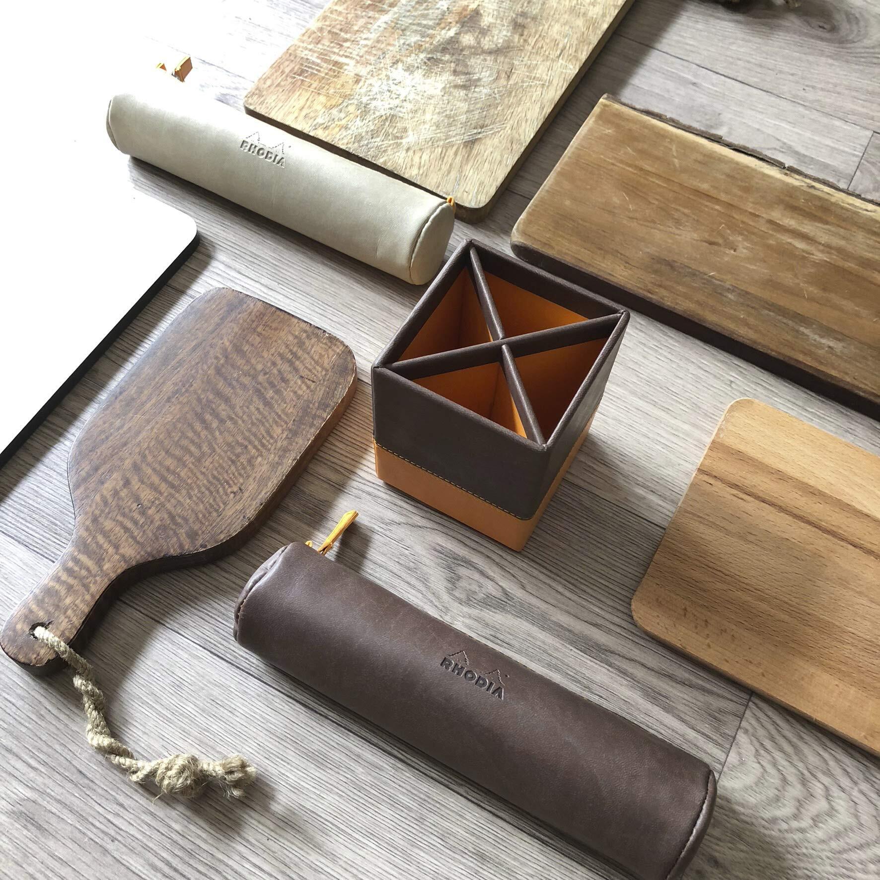 ロディアラマシリーズのアイコン的なイタリア製合皮を使用した円柱型のペンケースです。