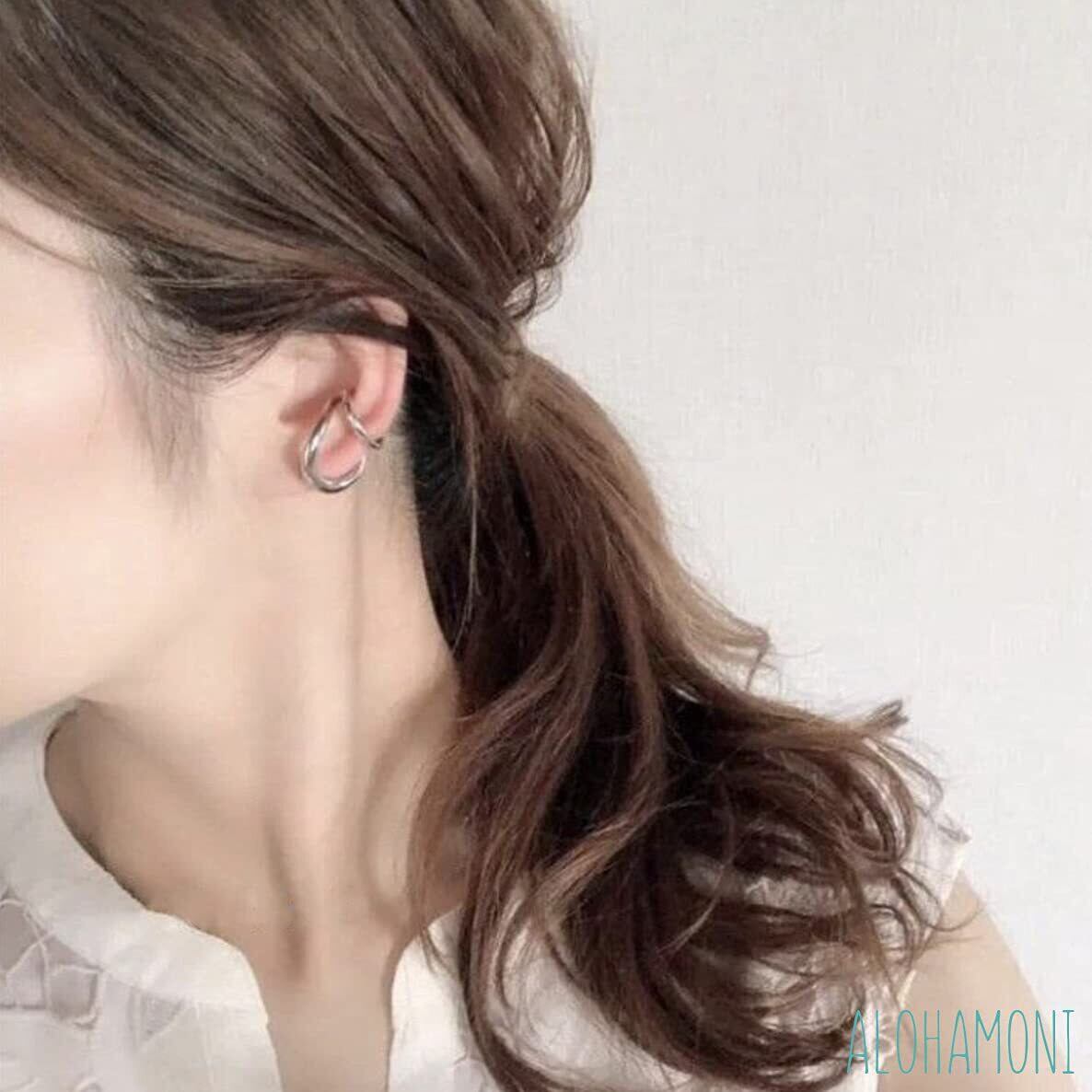 ALOHAMONI (アロハモニ) イヤーカフ 2連 ダブルライン 丸み 滑らか ニュアンスライン イヤカフ 軟骨 フープ イヤークリップ 重ね付け 片耳 両耳 2個セット 韓国 オルチャン