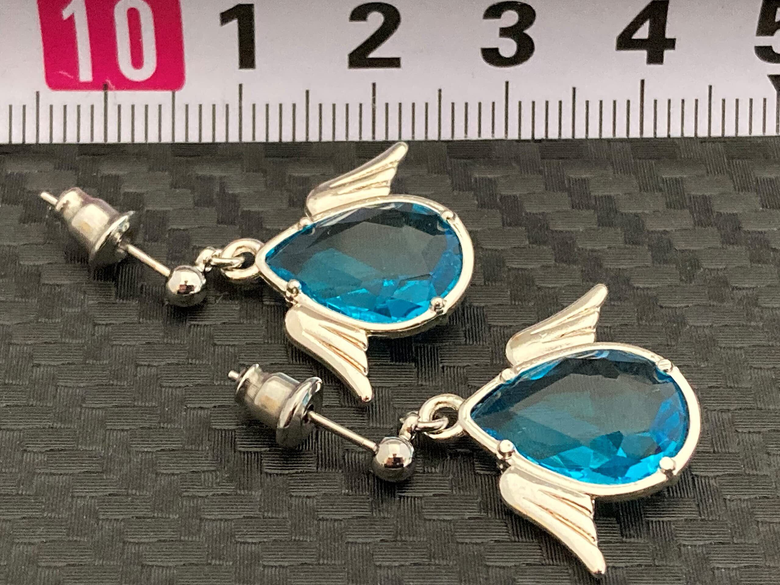 Akusetia ピアス シルバー サージカルステンレス スタッドピアス シンプル 両耳 18G ガラス 羽 翼 天使 ドロップ 大きめ 水色 スカイブルー