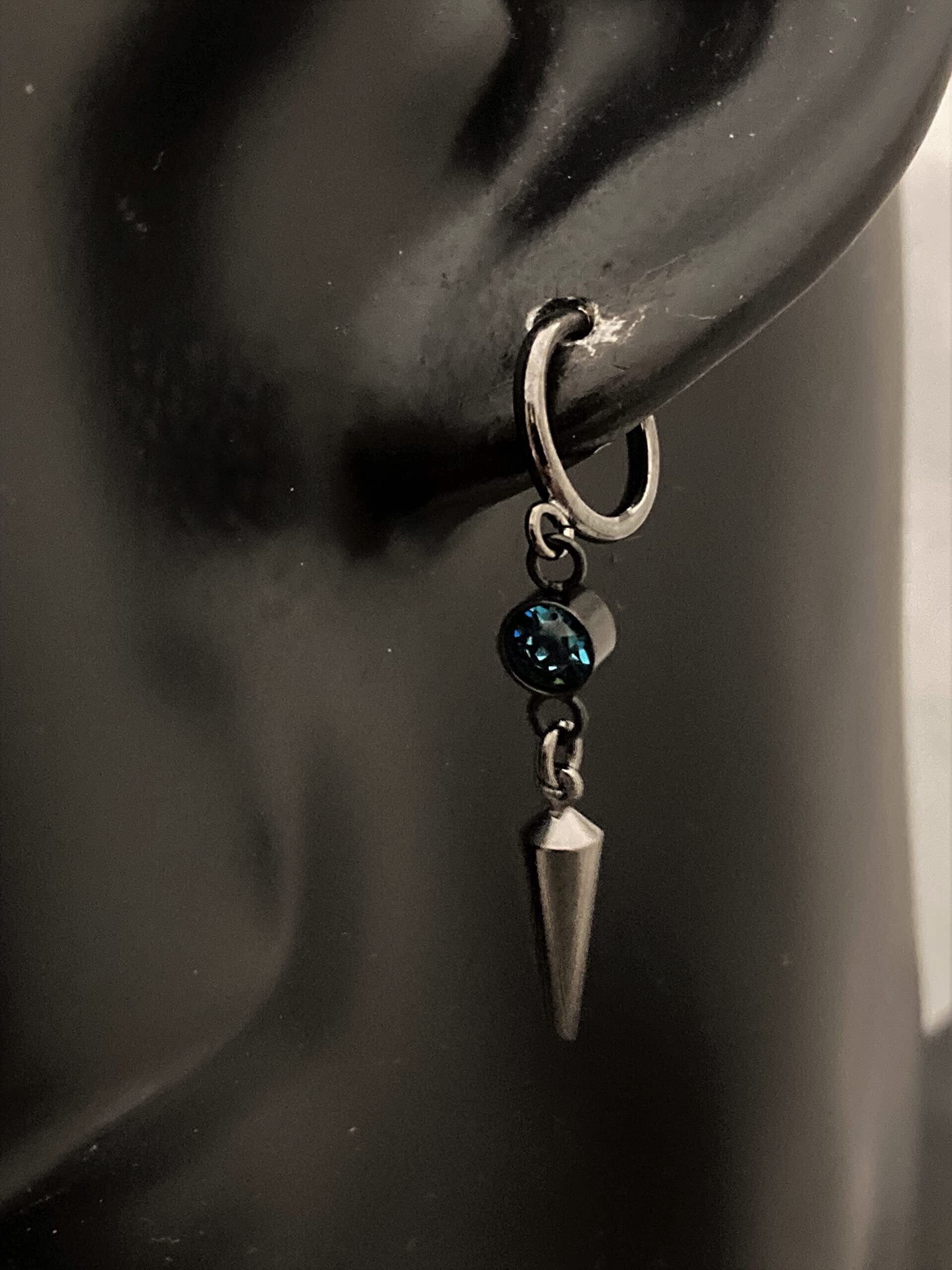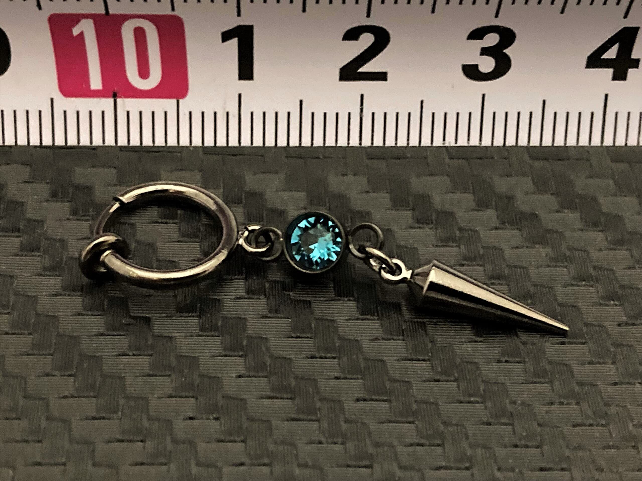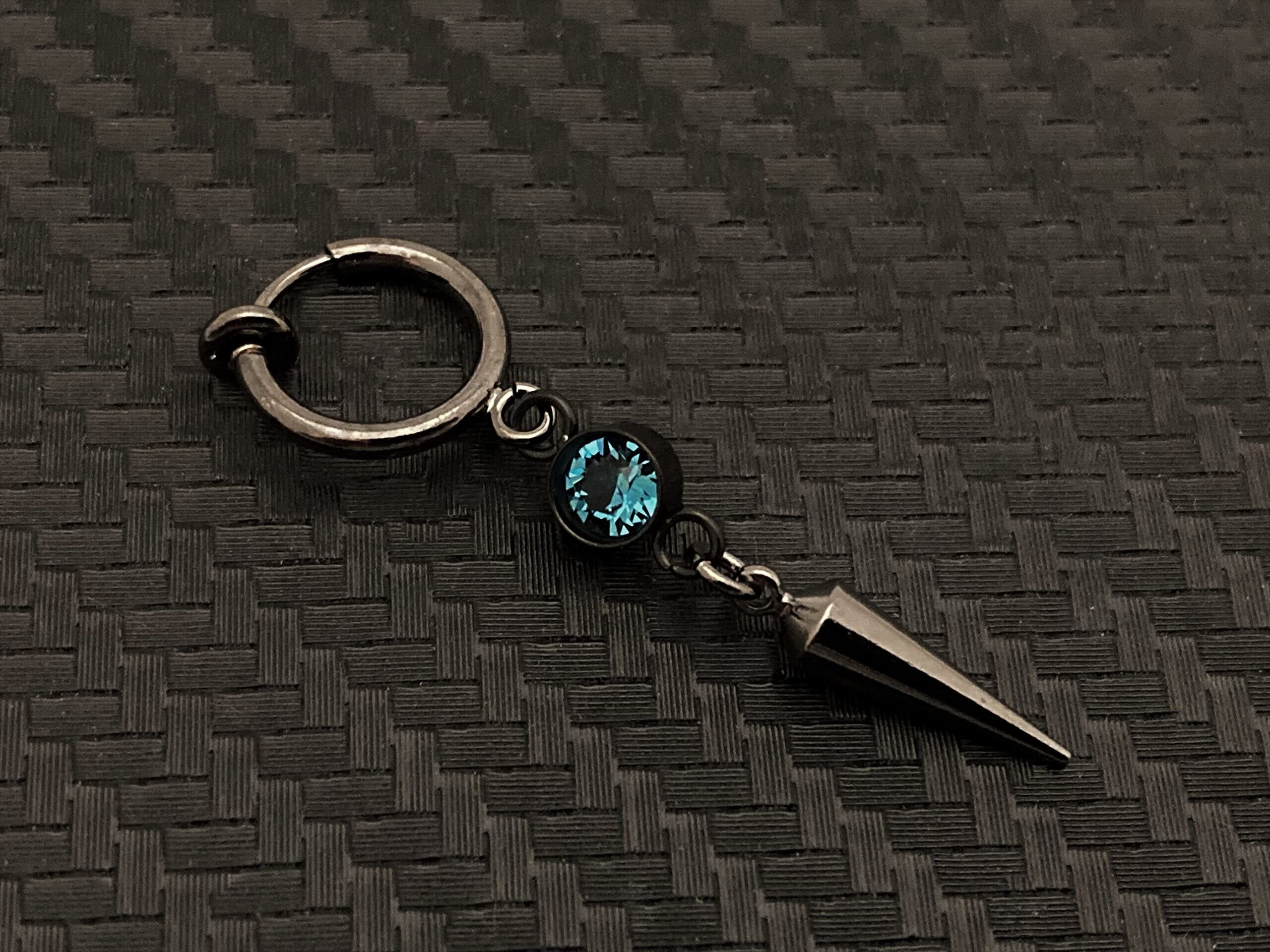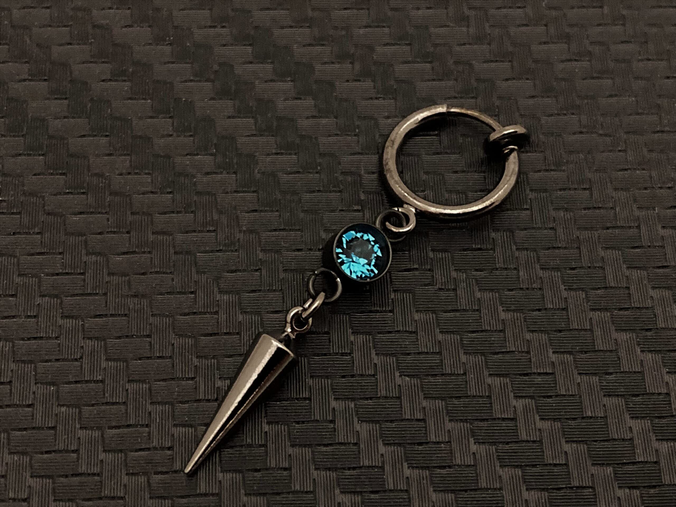 【在庫セール】Akusetia バネ式 リング ピアス イヤリング 片耳 メタルブラック 黒 クリスタル ノンホールピアス シンプル メンズ レディース ダガー (水色 アクアブルークリスタル) | ニコニコSHOP