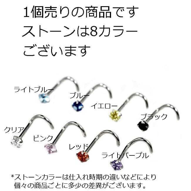 PIAcollection 鼻ピアス 18G スクリュー タテ爪 ジュエル クリア 2.5mm シルバーカラー ハナピアス 鼻ピ ノーズ ボディピアス ボディーピアス sc18sv25cl