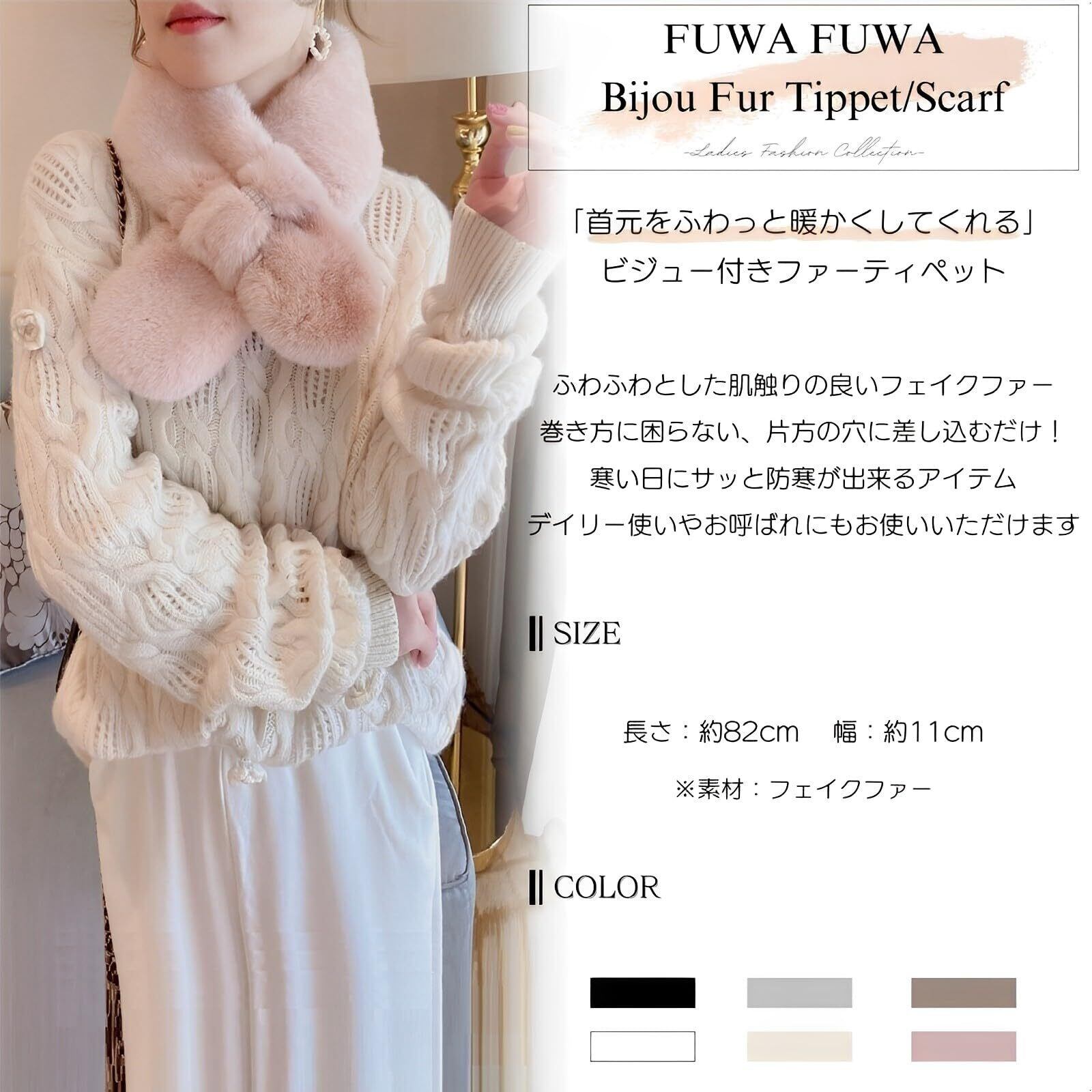 [マグノ] ビジュー付き ファー ティペット レディース マフラー 防寒 暖かい ふわふわ スヌード