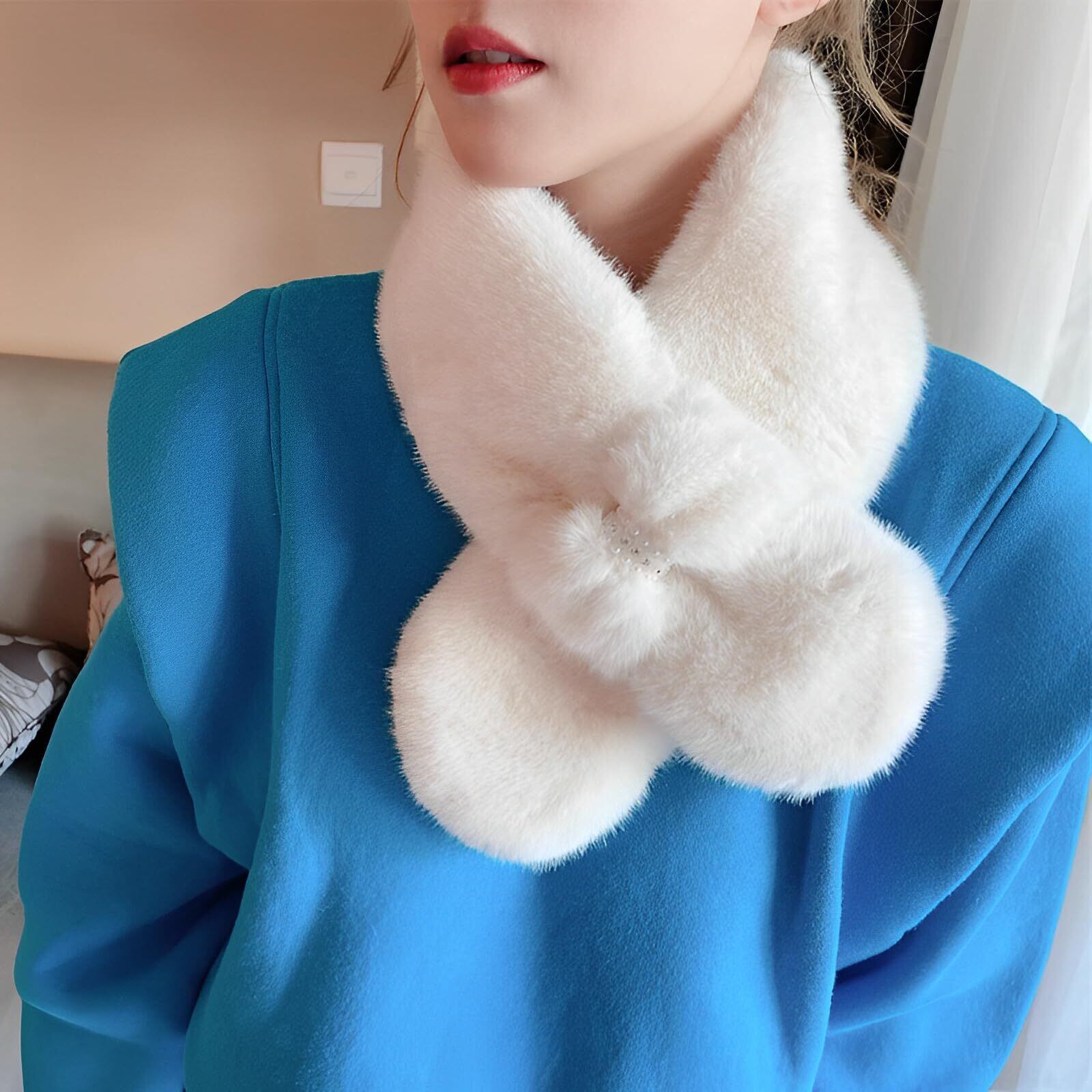 【人気商品】[マグノ] ビジュー付き ファー ティペット レディース マフラー 防寒 暖かい ふわふわ スヌード