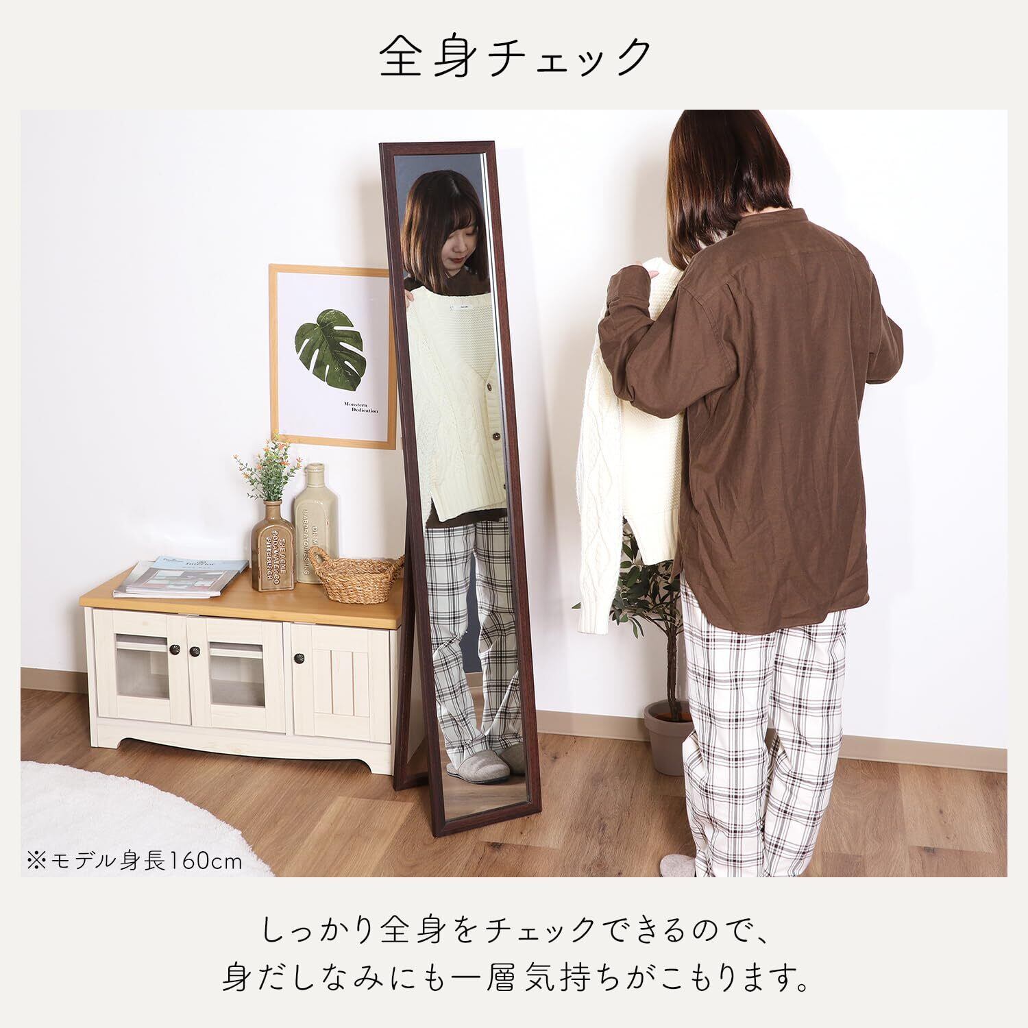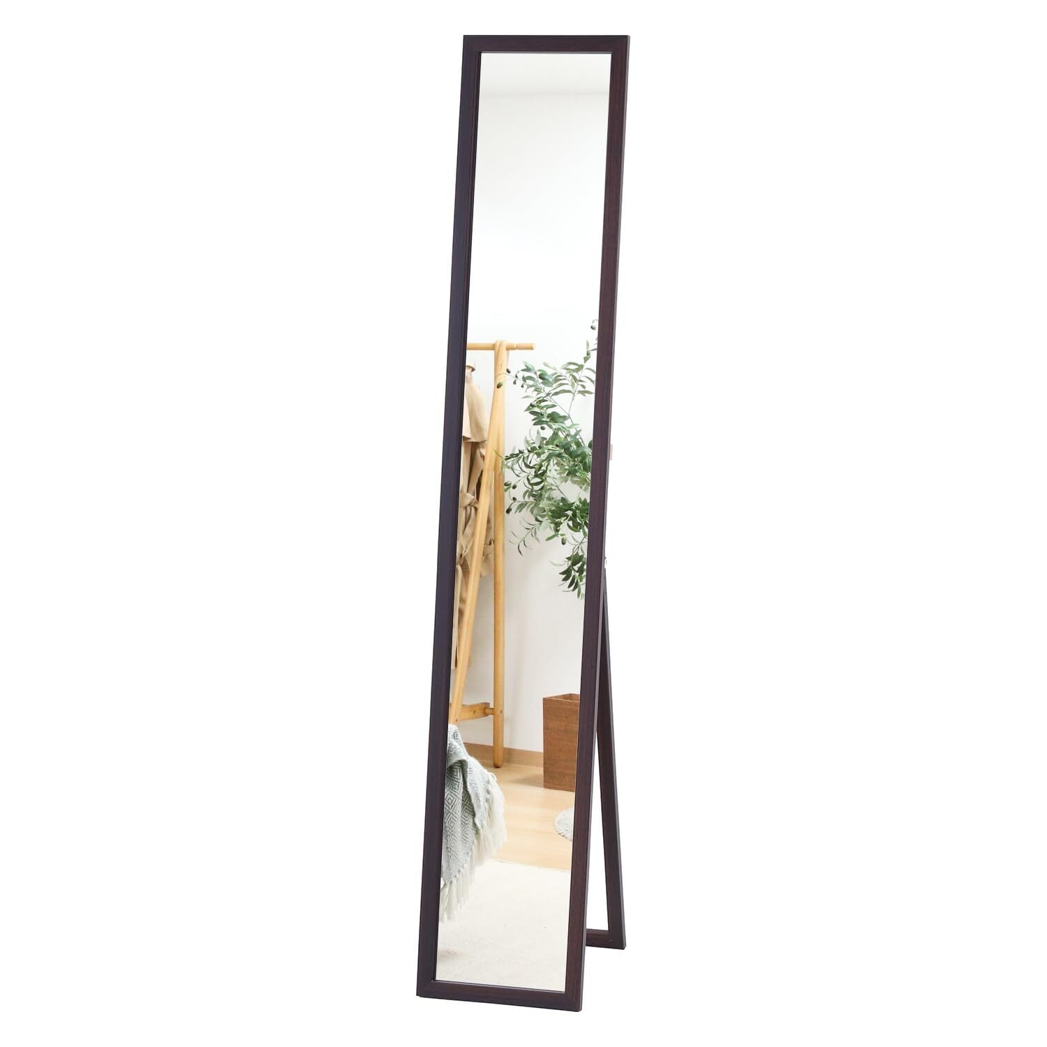 不二貿易 姿見 全身鏡 スタンドミラー 飛散防止加工 ルームミラー 木製 折りたたみ 一人暮らし 単身 幅27×奥行39×高さ147.5cm ブラウン 72091