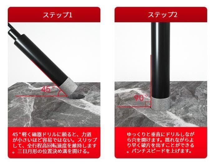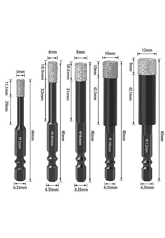 【穴あけサイズ】:5/6/8/10/12mm 素材を使用しています。6.35mm六角シャンク ダイヤモンド, 冷却ワックス付き.